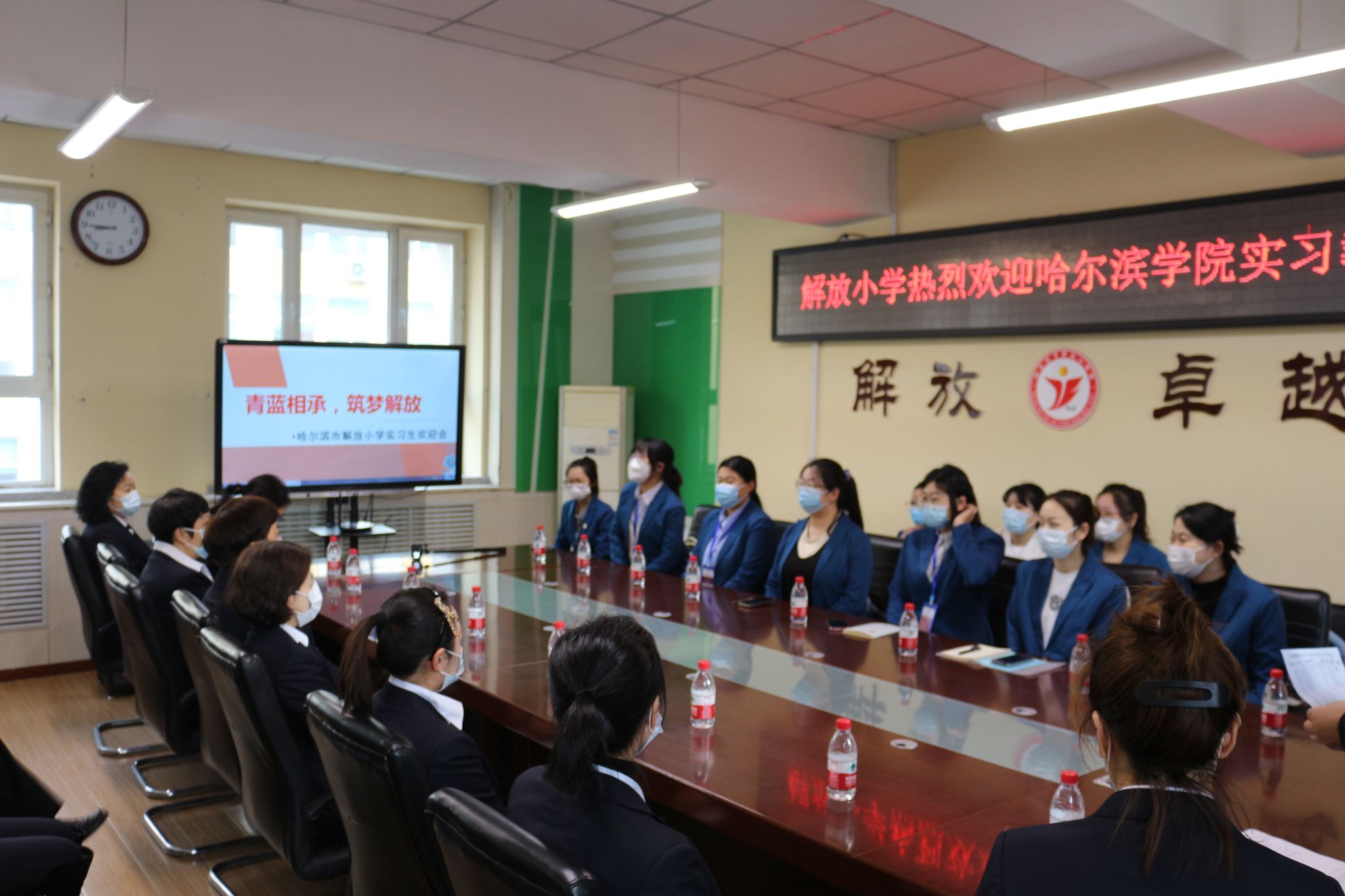伴着和煦的阳光,迎着初春的微风,3月9日上午小学教育专业的张春宏老师和2019级12位学生来到了哈尔滨市解放小学进行为期十周的实习。解放小学为同学们和老师召开了欢迎会,校党支部书记吴长清校长、王秀华副校长、解宁主任和12位班主任参加了会议。