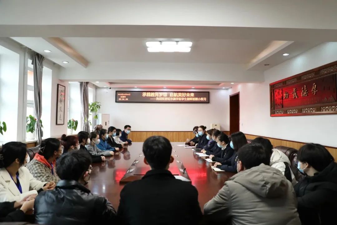 我院实习生代表张洹同学代表实习生们表达心声,希望同学们和自己一起怀揣教育热情,尽快完成由青涩学生到优秀教师的蜕变。教师代表李宝老师、许月燕老师代表哈尔滨学院教师教育学院对我校的大力支持表示了衷心感谢,并对实习生提出了明确的要求。