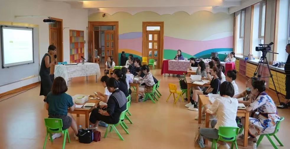 为全面推动落实“黑龙江省安吉游戏推广三年行动计划”、“哈尔滨市推进幼小街接攻坚行动实施方案”,结合《幼儿园入学准备教育指导要点》和《小学入学适应教育指导要点》,2022年7月7日,学前系主任卢红博、小学教育教研室主任王睿一行赴尚志幼儿园抚顺园区开展普惠性幼儿园教师名园浸润、工作坊培训,来自哈尔滨市六个区的47名普惠性幼儿园教师来到幼小科学衔接示范园——尚志幼儿园抚顺园区,开展了以“幼小衔接”为专题的名园浸润与工作坊培训活动。