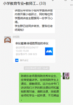 学院遇到好的报告,也会要求教学法老师等专业相关老师一起来听,把实习和专业建设紧密结合起来。实习不仅仅是学生毕业前的一个教学环节,而是纳入人才培养整体中,一切都是以产出导向保质保量进行,为培养高素质的小学和幼儿园教师提供保障。
