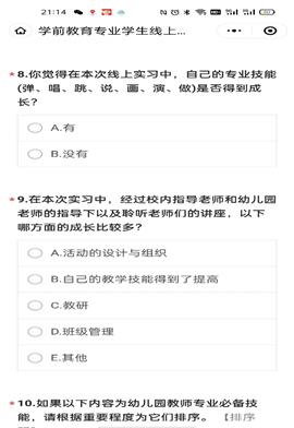 第三阶段为”云试讲“,学生需编写教案并录制视频,小组讨论分享。第四阶段为”云展示“,汇报展示实习成果。在整个”云实习“过程中,教师全程指导,线上沟通,主题和随机提问相结合。学生要针对每项实习内容完成项目任务单、问卷调查和《实习手册》。