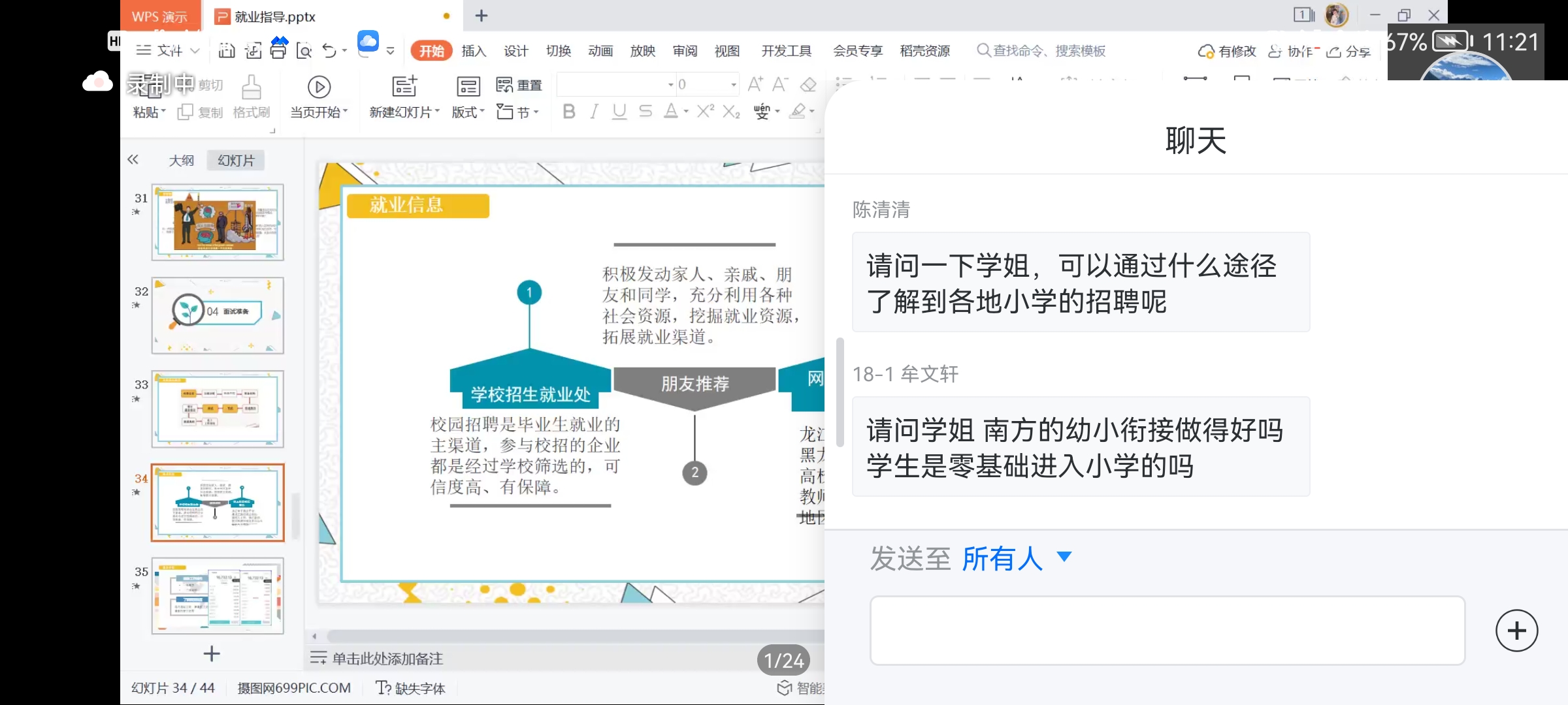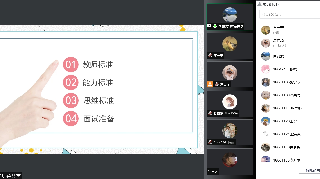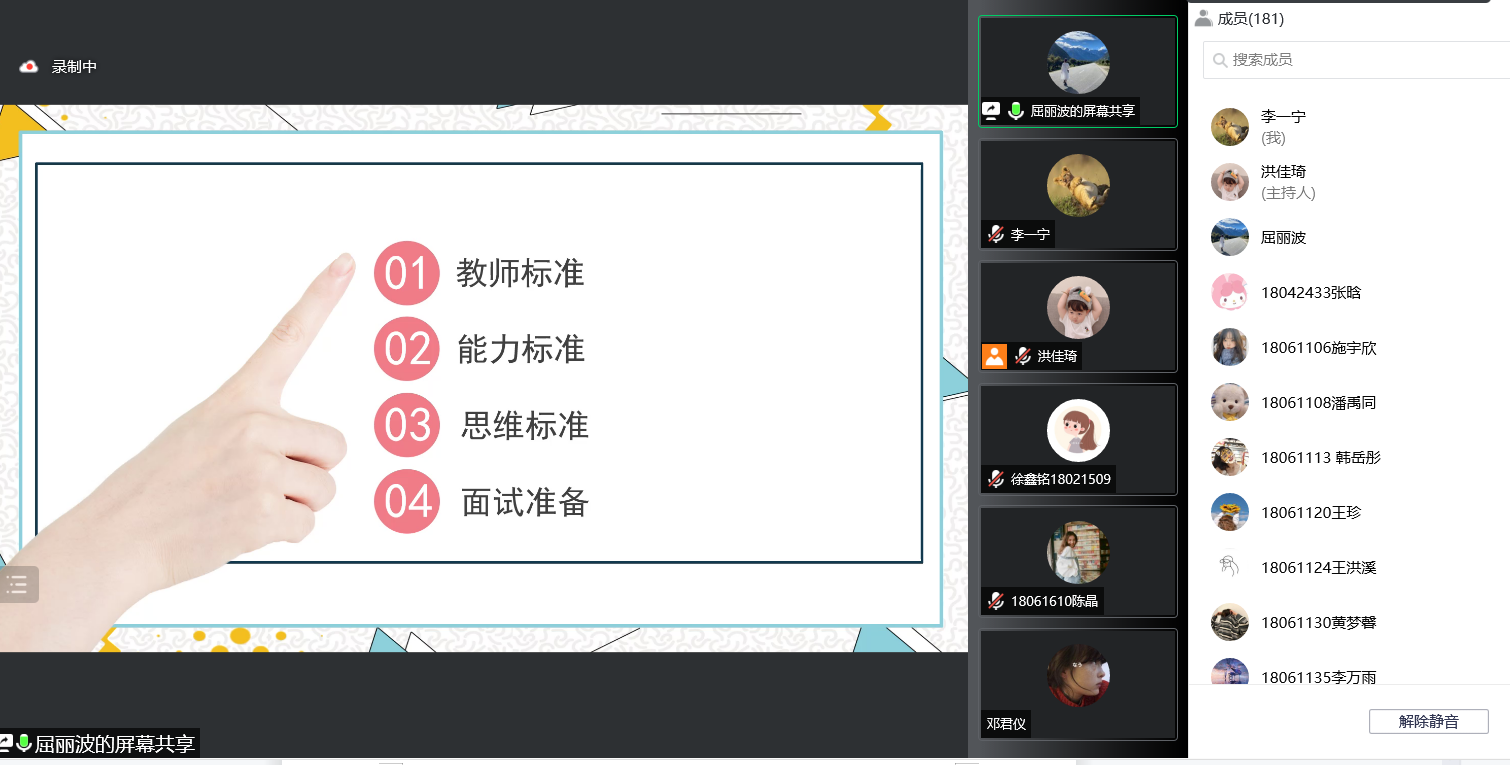 教师教育学院高度重视毕业生就业工作,为加强2022届毕业生就业指导,促进其顺利就业,我院特邀2018届小学教育专业毕业生屈丽波开展以“奋进·前行无畏”为主题的线上就业指导讲座,参加此次讲座的领导有教师教育学院院长周淑红教授、教师教育学院党委杨晓静书记以及2022届毕业生。本次讲座由辅导员李一宁老师主持。