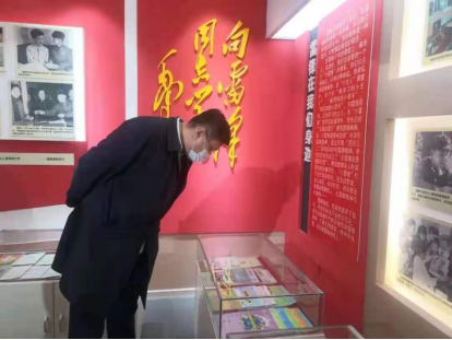 融洽的座谈交流后,宁院长、周院长和孙老师在李校长和刘校长的陪同下参观了校史馆——雷锋展室。雷锋小学大队辅导员杨影老师着重介绍了雷锋展室的珍贵资料。宁院长感叹展室过程性资料给予小教专业文化建设的启发,同时希望更多的教师教育学院学生走进雷锋小学,在红色文化的浸染下坚定职业信念,树立努力方向。