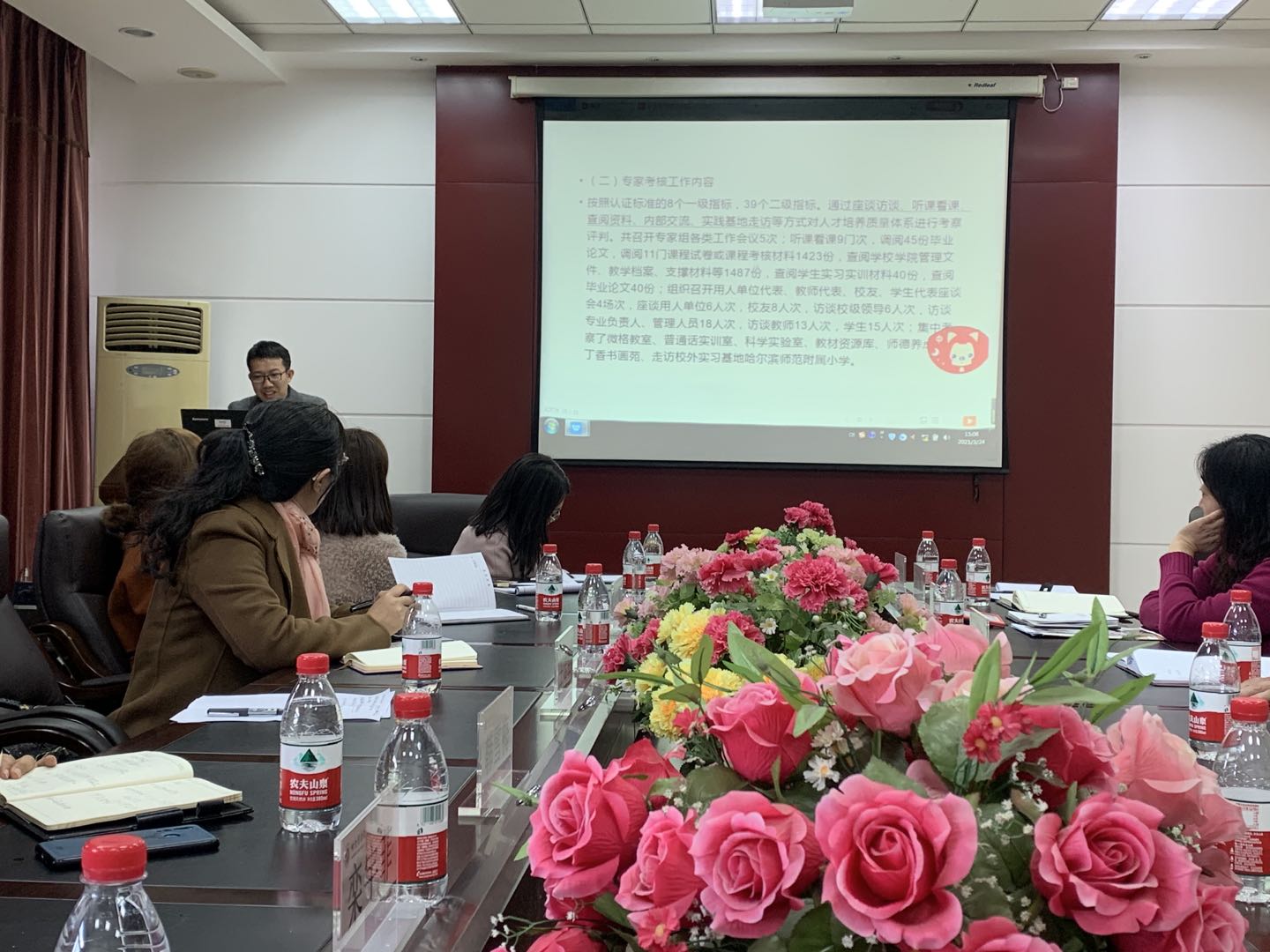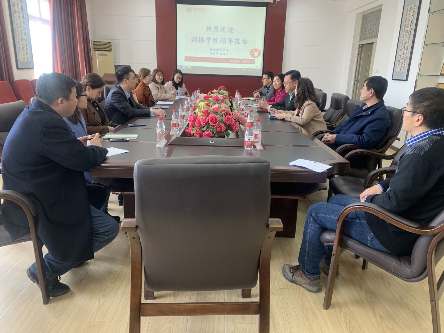 2021年3月24日13:30,哈尔滨剑桥学院教学副校长王志臣、教务处处长宫洁、教育学院教学院长韩雪梅、副院长柏琳、栾宇菲、小学教育系主任马影、学前教育系副主任范佳琳、艺术教研室主任马士伟一行8人到我校教师教育学院,针对小学教育专业认证情况进行考察学术。哈尔滨学院工会主席陈威、教务处处长田野、教师教育学院院长宁凯、党总支书记李铁岩、教学院长周淑红、副处级辅导员孙华、小学教育系主任徐祖胜、学前教育系主任马世超出席了此次交流会议。