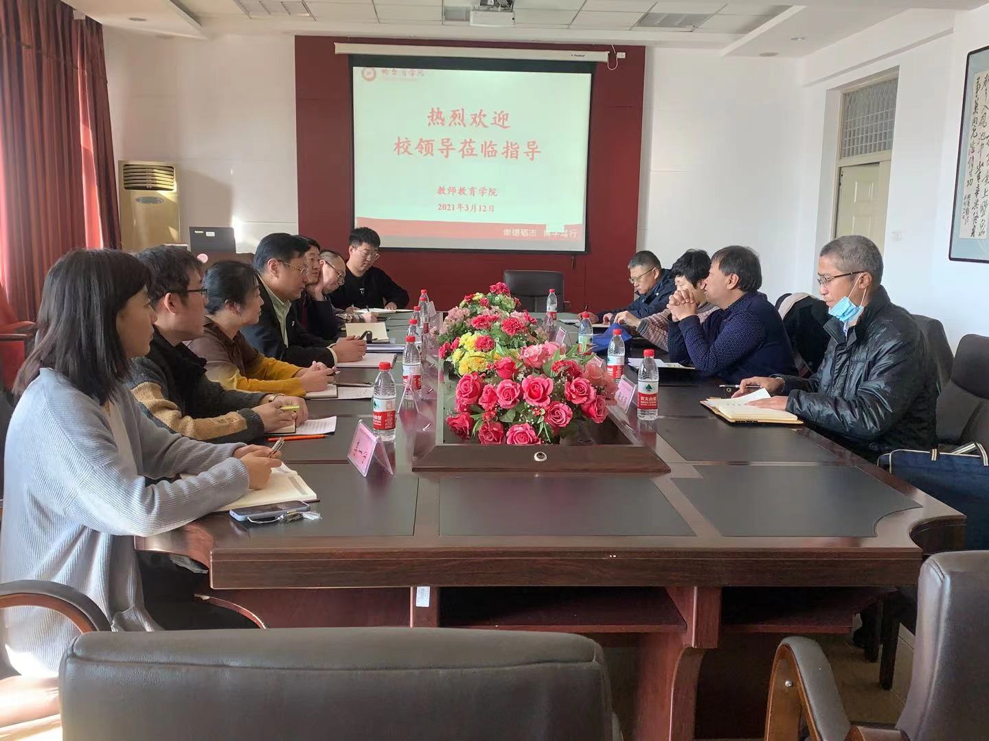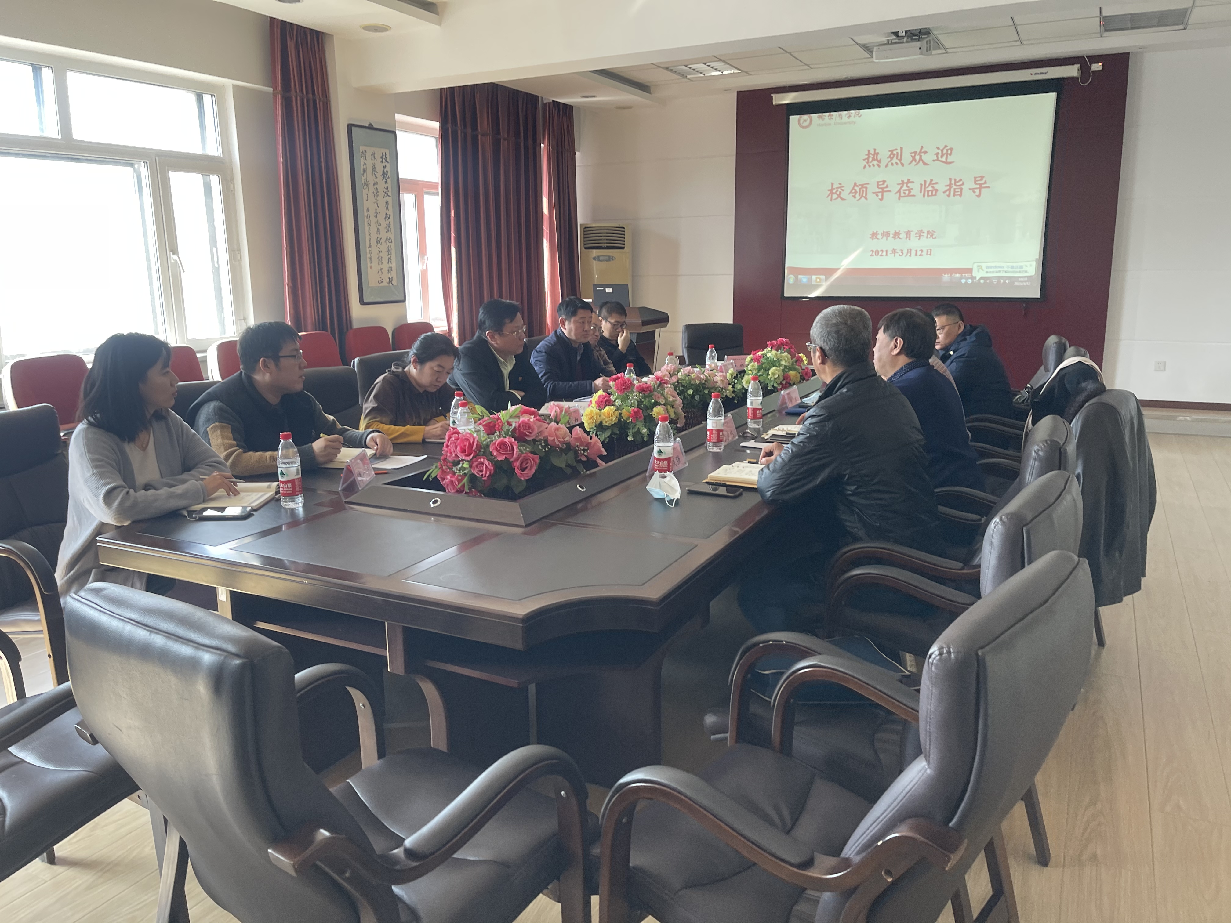 3月12日上午,于少鹏副校长就进一步落实冯延平书记、胡宝忠校长在春季学期全校中层干部大会上的讲话精神以及有关招生就业工作的要求,来到教师教育学院进行调研指导。招生就业处丛军处长、张成强副处长、李业明副处长以及教师教育学院就业工作领导小组成员参加调研会。