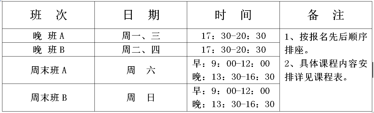 设置晚班、周末班等多种班次,长达200课时,丰富教学形式,既适合在校学生,也方便在职学员的时间安排,独家设置模考答疑课,及时巩固所学知识点。