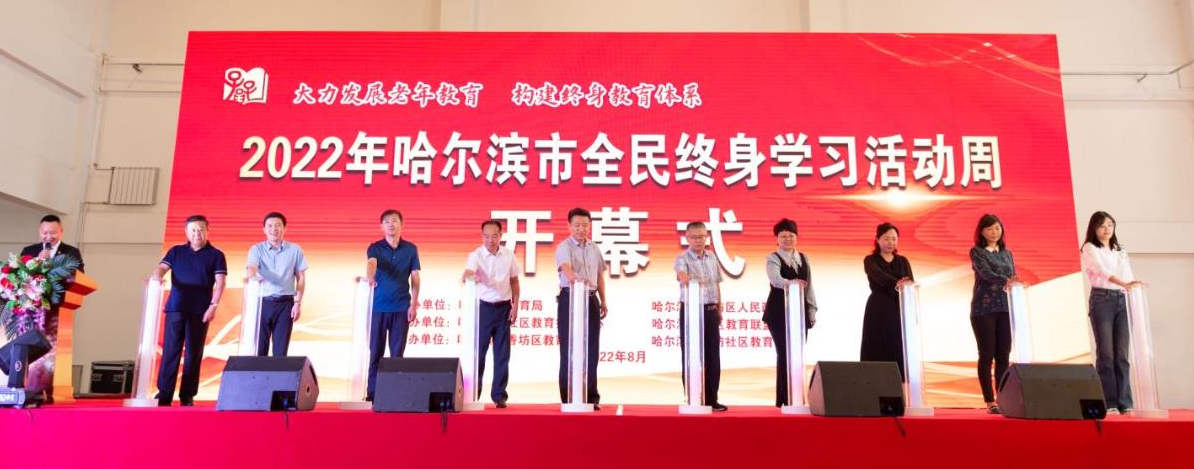 (文/王黎黎)为深入贯彻落实习近平总书记关于教育的重要论述,进一步落实《国民经济和社会发展第十四个五年规划和2035年远景目标纲要》提出的“完善终身学习体系,建设学习型社会”要求,全面提升全体市民的终身学习能力,营造全民终身学习良好氛围,8月22日上午8:30,由哈尔滨市教育局主办、哈尔滨市社区教育指导中心、市社区教育联盟协办的哈尔滨市“全民终身学习活动周”总开幕式拉开帷幕。我校作为社区教育联盟牵头单位之一,继续教育中心主任吴立刚和市民学习中心主任付冬参加了活动。