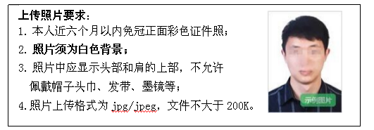 ②本人证件照:上传本人近期正面、免冠、彩色(白色背景)证件照,具体要求如下: