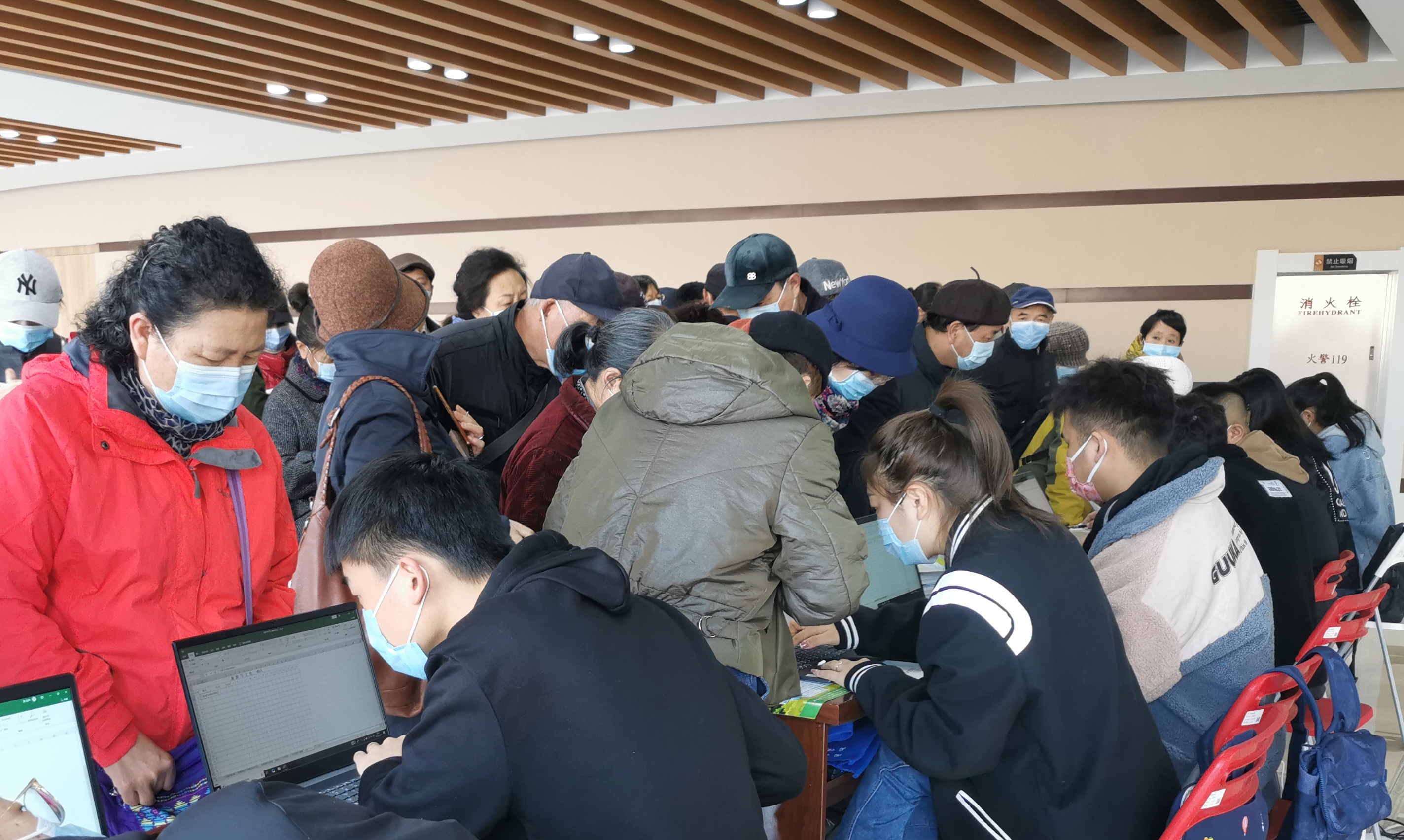3月14日,继续教育学院2021年春季学期“市民课堂”终身教育课程迎来首个报名日。早上7点30分,几百名学员早早的来到报名现场,按照疫情防控的相关要求,他们在工作人员的组织下,根据学科班级指示牌保持合理间距等候入场,经过测温和扫码后分组分批进行报名,秩序井然有序。