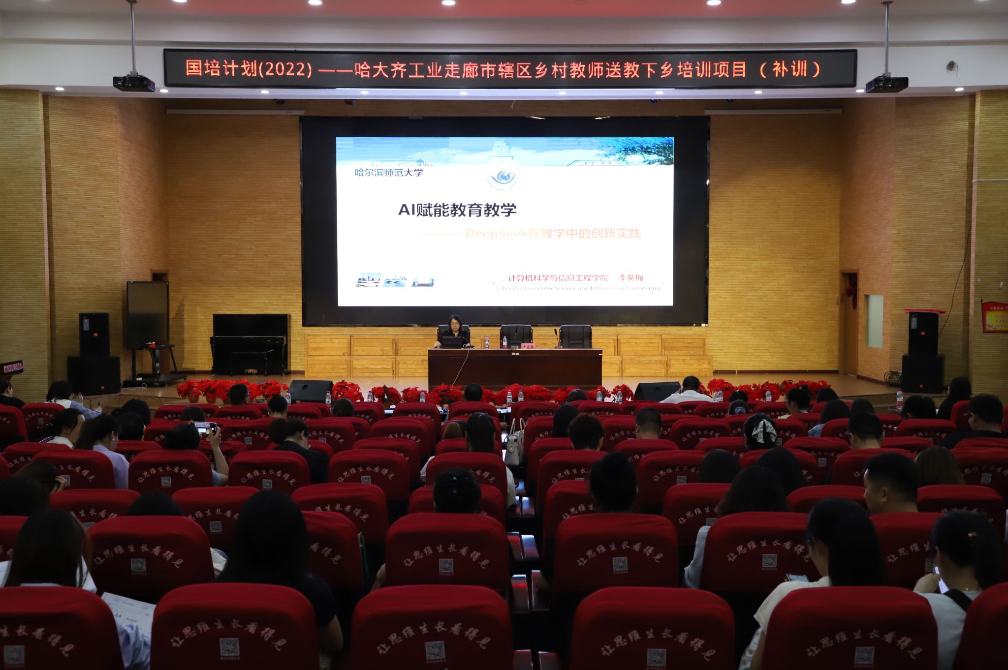 (文/原振莹)为扎实推进“国培计划”--黑龙江省哈大齐工业走廊市辖区乡村教师送教下乡培训项目(3201)补训工作,进一步提升松北区教育骨干队伍的专业素养,2025年6月19日,我校继续教育学院在哈尔滨新区师范附小成功举办了第四次线下集中培训。本次培训以“AI赋能教育教学——deepseek在教学中的创新实践”为主题,吸引了400余名松北区2023、2025年后备干部及2024年新录用教师的积极参与。