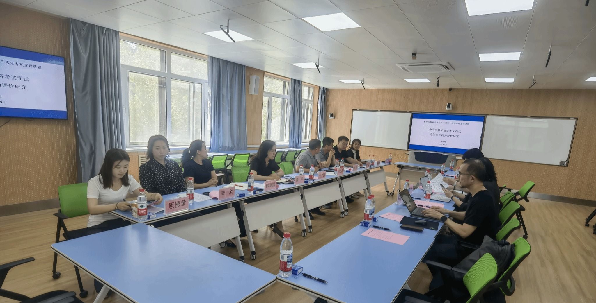 9月5日上午,教育部教育考试院教师处杨卓、周杭漪及南京晓庄学院曹慧英教授、福建师范大学郑士璟副教授一行四人来到我院调研,重点围绕教育部教育考试院十四五支撑课题“中小学教师资格考试面试考生综合能力评价”课题展开交流研讨。副校长于少鹏出席会议,继续教育学院院长吴立刚、副院长李刚、教资首席面试考官秦平教授及林晓颖副教授、抽题组李欣副教授、小学教师面试考官代表徐慧、教资面试考点CTO陈岩及考务吴世翀、原振莹参加调研。