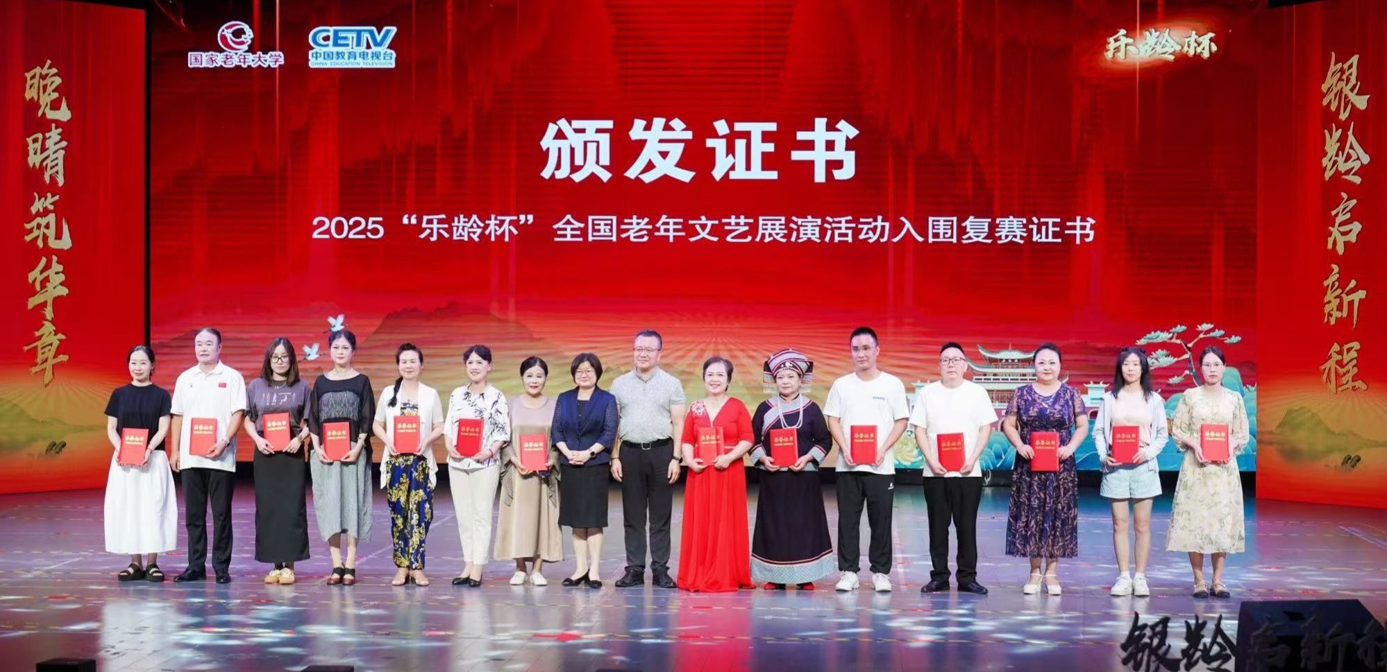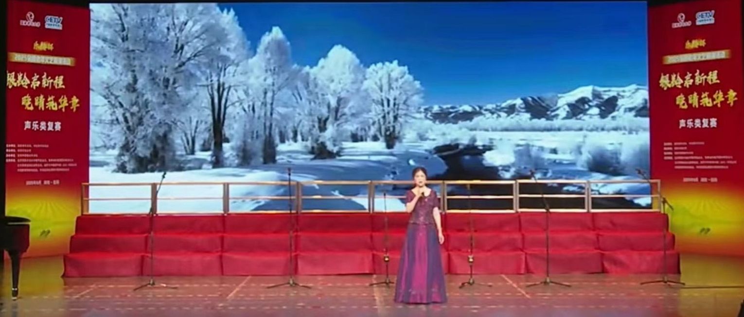 在我校声乐教师侯春波的悉心指导下,市民学员王晓梅凭借一曲《红梅赞》从全国九千余件声乐作品中脱颖而出,成功跻身全国前一千强并进入复赛阶段,最终在8月28日岳阳举行的复赛中,以优异的表现荣获由国家老年大学、中国教育电视台联合颁发的2025“乐龄杯”全国老年文艺展演活动荣誉证书。