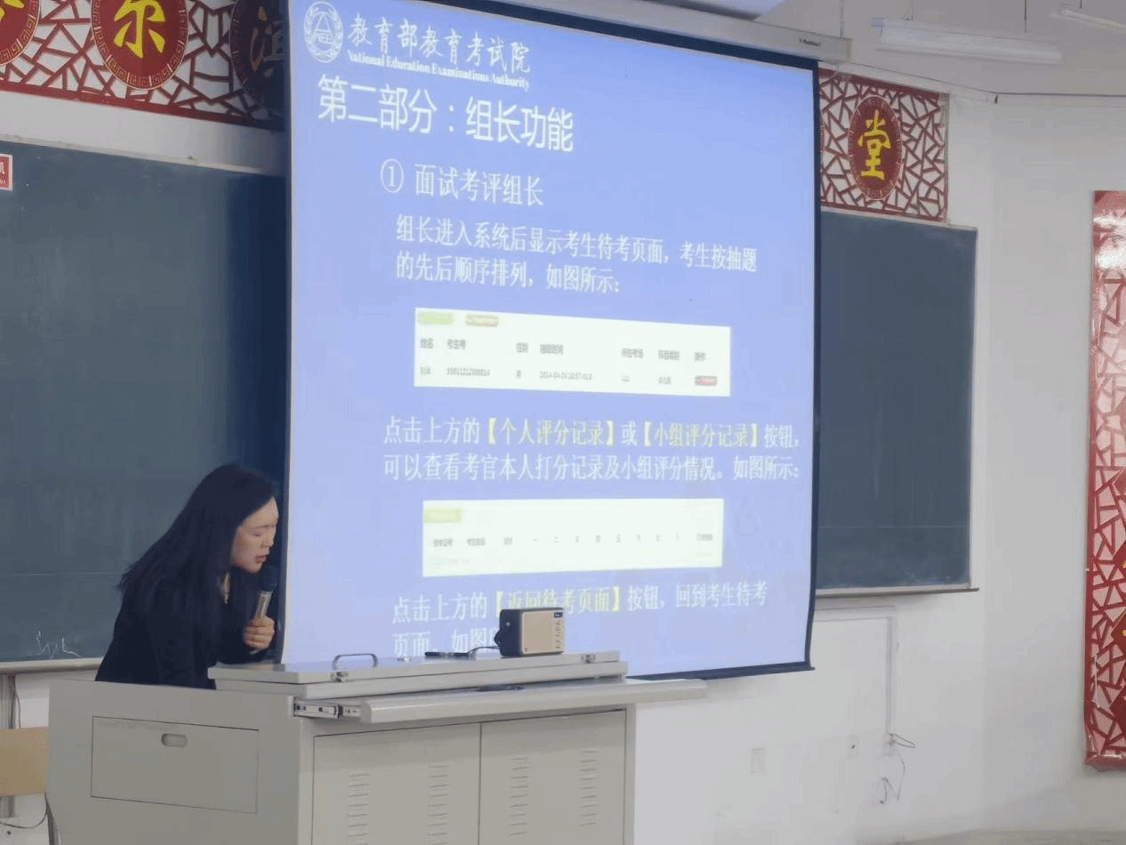 考试实施过程中,全体考官严格遵循考评标准,从专业、客观的角度对考生的表现进行打分;技术保障人员全程值守,实时保证网络设备安全运营,确保考试系统稳定高效;考务工作人员认真履职,从安检、身份证件核对、题目抽取到备课试讲,各岗位人员服务有温度,管理有制度,以高标准服务考生,全流程护航考试的态度圆满完成考试的组织和服务工作。
