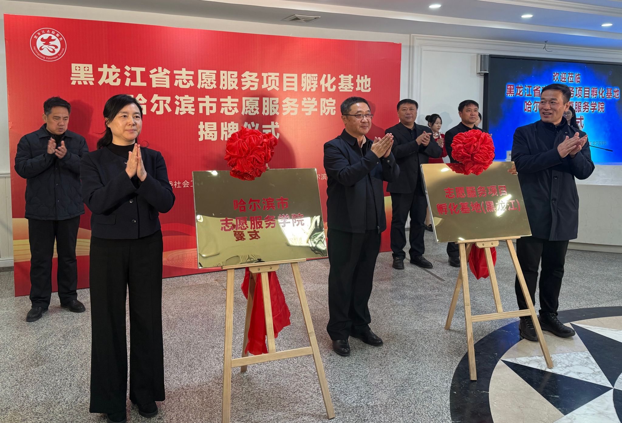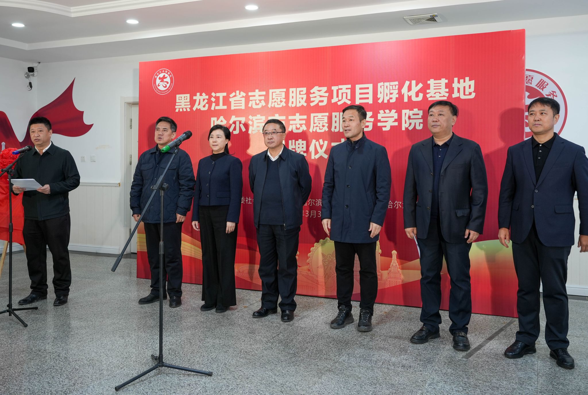 仪式现场,与会领导共同为黑龙江省志愿服务项目孵化基地、哈尔滨市志愿服务学院揭牌。孙镝飞为省级志愿服务站点授牌,我校继续教育学院院长吴立刚代表学院接受授牌,标志着基地正式进入实体化运营阶段。