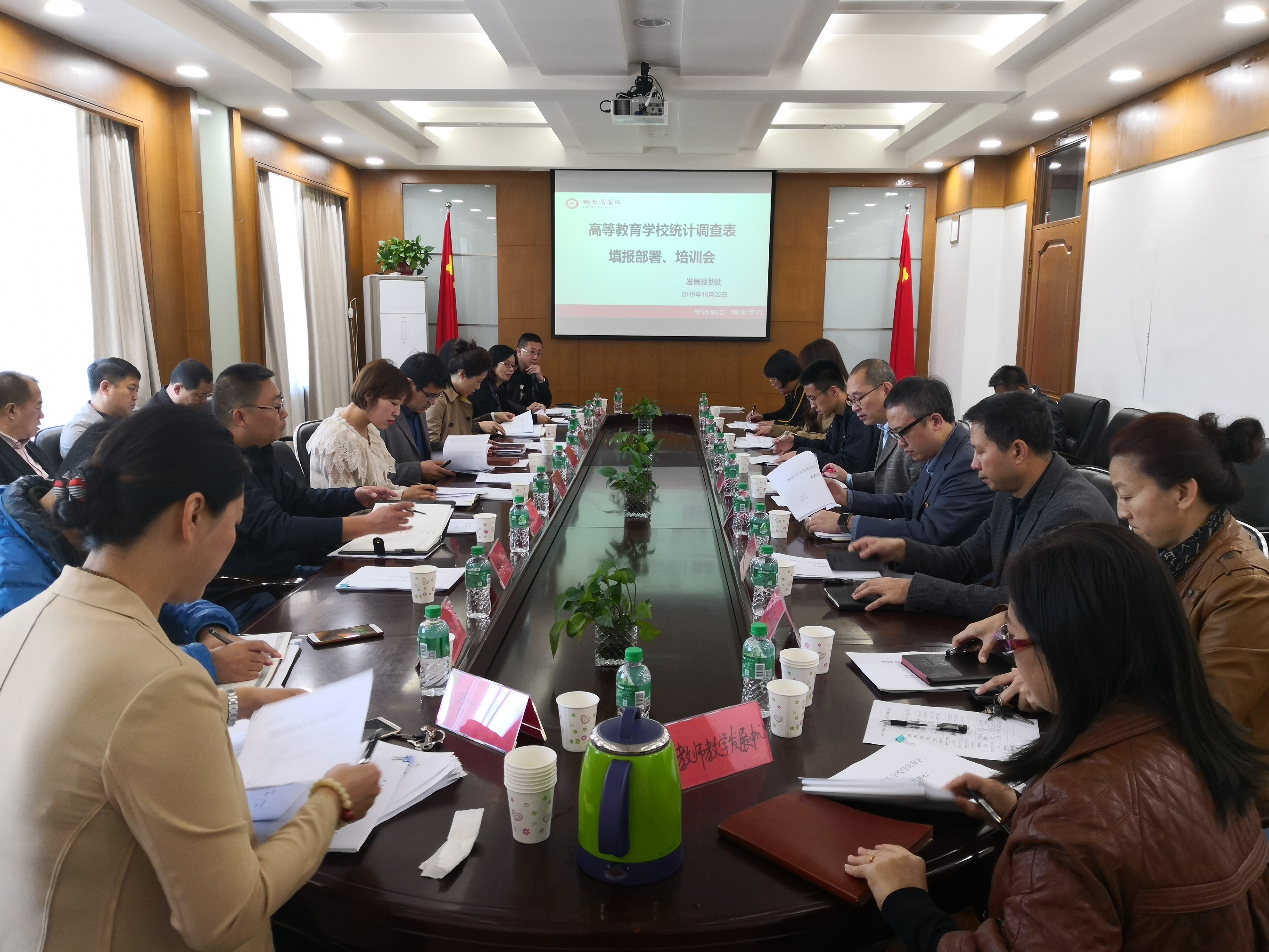 2019年10月22日上午,哈尔滨学院2019年度高等学校统计调查报表布署、培训会在行政楼417召开,副校长宋国利出席会议并讲话,发展规划处处长李雪对统计员进行了培训。相关职能部门、学院负责人和统计员参加了会议。
