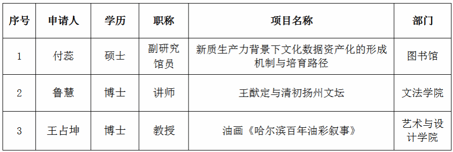 2025年度哈尔滨学院国家级科研项目培育申报拟立项项目名单(社科类)