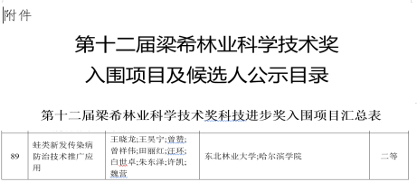 近日,第十二届梁希林业科学技术奖公布了评选结果,我校地理与旅游学院青年教师王昊宁博士凭借“蛙类新发传染病防治技术推广应用”科研成果荣获梁希林业科技进步奖二等奖(第二名)。