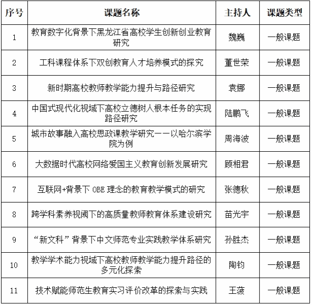 黑龙江省高等教育学会“2023年高等教育研究课题”立项一览表