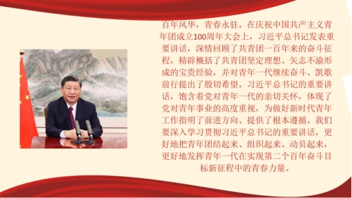 会议首先回顾了习近平总书记在庆祝中国共青团成立100周年大会上的讲话内容,深入剖析了讲话中关于共青团百年奋斗史积累的宝贵经验,通过提炼并解读讲话中的重要内容,引导广大青年认识青年运动的根本遵循、明确前进方向。会议引用习近平总书记对当代青年的寄语,激励我院学生会青年组织起来、动员起来,发挥优秀带头作用,坚定不移听党话、跟党走,坚定捍卫“两个确立”,在实现民族复兴的道路上奋勇争先。