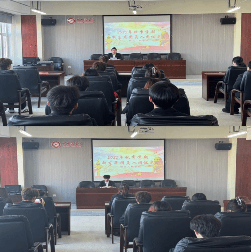 12月9日,食品工程学院在工程实训楼705举行2025年秋季学期新团员入团仪式。学院分团委书记侯成成,全体新团员和老团员代表参加活动。