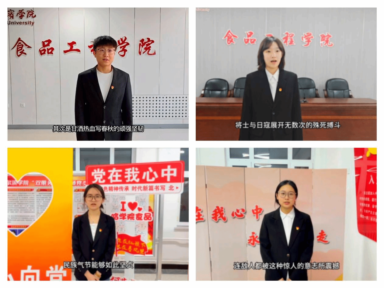 为进一步深化学习成果,学院三个学生党支部联合开展“讲述靖宇故事,赓续红色血脉”主题视频接力活动。在视频中,学生党员们结合自身学习体会,围绕杨靖宇将军的英雄事迹,用真挚的语言讲述自己心中的“靖宇故事”,分享感悟收获。有的党员谈到,杨靖宇将军“冰天雪地里与敌人周旋七天七夜”的事迹让自己深受震撼,明白了今天的幸福生活来之不易;有的党员表示,作为食品专业的学生,要以先烈精神为动力,努力钻研专业知识,守护食品安全防线。通过生动的画面和感人的讲述,不仅展现了食品工程学院学生党员的精神风貌,也让更多师生受到红色精神的熏陶,在全院范围内营造了“弘扬抗联精神、争做时代新人”的浓厚氛围。