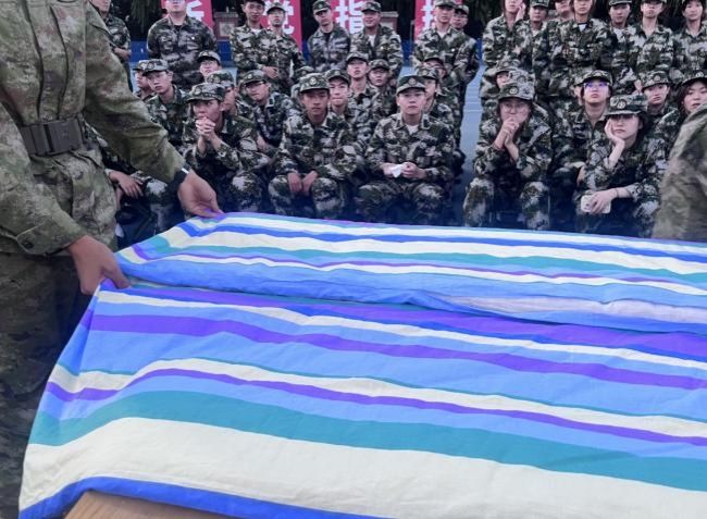 “出门看队伍,进门看内务。”宿舍内务整理是军训的必修课之一,为引导学生养成良好的生活习惯,营造整洁舒适的生活环境,食品工程学院23级新生在军训期间开展了叠军被训练活动。我院辅导员金玉宝全程跟随,23级全体新生现场学习。