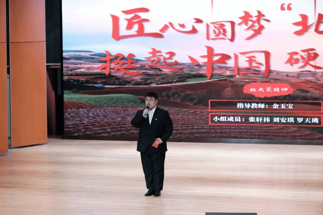 慎终如始,则无败事。从备赛训练到正式决赛,我院党委高度重视,指导教师金玉宝全程跟进备赛全过程并给予大力支持。团队反复研读习近平总书记的重要讲话精神,围绕伟大“北大荒”精神,结合学院党建工作进展和食品专业培养计划,确定了《匠心圆梦“北大仓”,挺起中国硬脊“粮”》的演讲主题,在一次次的模拟复盘中发现、解决问题,不断完善演讲稿和PPT,历时两个月的精雕细琢、攻坚克难,最终凭借稳定的发挥和出色的表现荣获大赛一等奖。