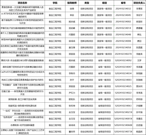 2024年度“黑龙江省大学生创新创业训练计划项目立项”结果