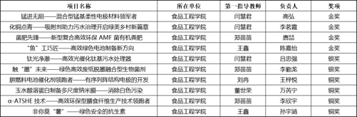 在第十四届工银融e行“挑战杯”黑龙江省大学生创业计划竞赛中,我院参赛学生从学科视角寻找结合点、探索创新点、形成突破点,不断优化参赛项目的研究设计,取得了金奖4项、银奖2项、铜奖4项,充分展示了食品工程学院师生热情参与、大胆创新、勇于创造的精神风貌。