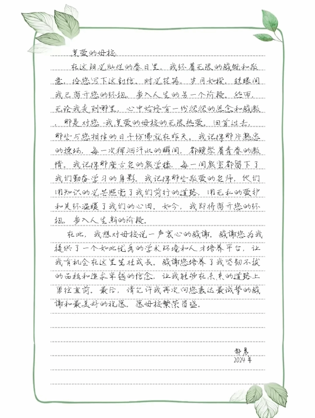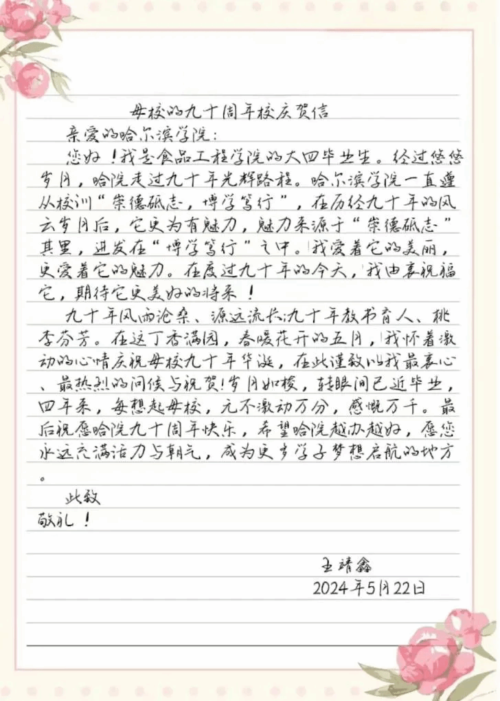 “青春不留白,吾辈勇向前”,毕业季如期而至,5月22日至27日,食品工程学院面向2024届毕业生开展“写给母校90周年校庆的一封情书”活动,旨在让即将离校的学子们通过文字表达对母校的深厚情感,同时也为即将到来的母校90周年校庆献上最真挚的祝福。