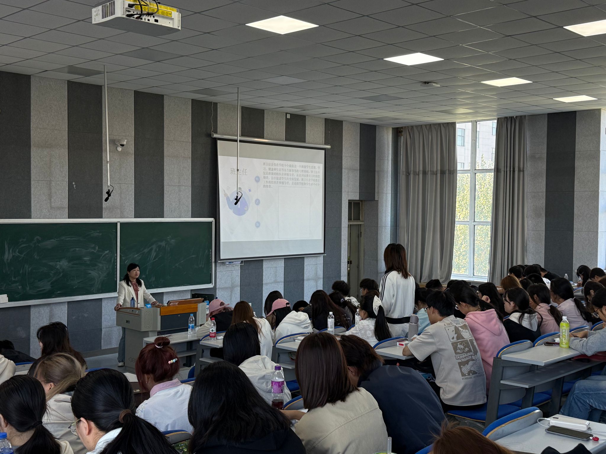 在随后的报告中,王锐老师结合自己多年的班主任工作经历,以生动鲜活的案例和充满智慧的教育感悟,深入浅出地阐述了如何成为一名具备“钝感力”的班主任。她围绕班主任应持有的积极阳光心态、处理各类班级事务的原则与方法、构建和谐师生关系及家校联系的艺术等核心内容展开分享。王锐老师指出,“向阳而生”意味着教师内心要充满正能量,以积极态度面对挑战;“融爱于行”则强调要将对学生的关爱融入日常教育的每一个细节;而“钝感力”并非迟钝,而是一种从容应对压力、包容学生差异、稳健处理矛盾的宝贵心理能力。她还分享了如何通过有效的班主任工作,促进所教学科成绩提升的实践经验,展现了班主任角色在学生全面发展中的关键作用。学生与王锐老师积极互动,就班级管理中的具体困惑与王锐老师进行了深入交流。