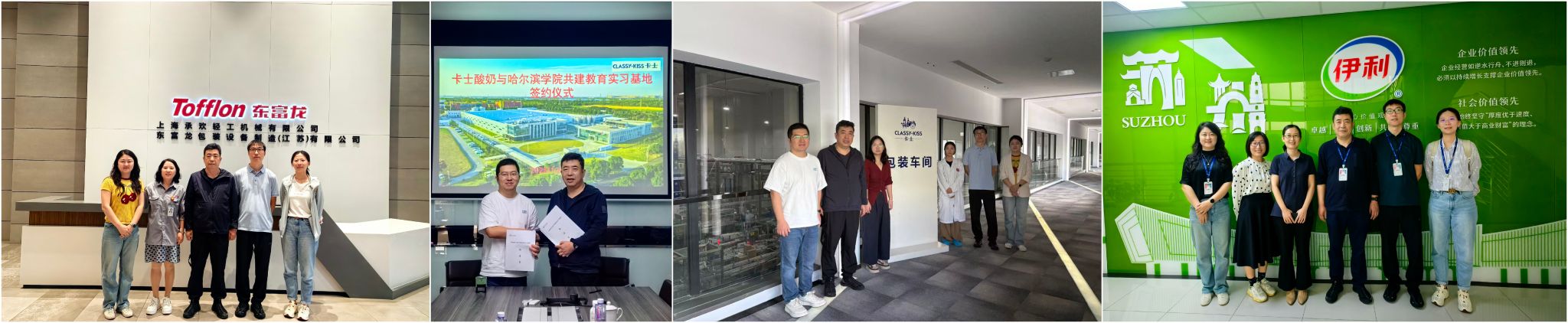 考察组先后走访了上海东富龙科技集团五厂区、卡士酸奶(苏州)有限公司、江苏承欢轻工机械有限公司、伊利苏州乳业有限公司,建设技术集团(青岛)有限公司、青岛元信检测技术有限公司、华测检测认证集团(山东)有限公司、正大食品企业(青岛)有限公司8家企业,同时,看望正在卡士酸奶(苏州)、青岛华测的实习学生和就业学生,并签署实习合作协议。