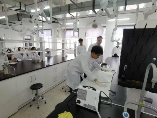 本次演练紧贴实际,设置了多个模拟场景。在专业教师的指导下,同学们先后演练了实验室明火自救、洗眼器与紧急喷淋装置的正确使用、防烟面具的快速佩戴,以及伤口的消毒与包扎等关键应急技能。同时,现场还对防烟面具、灭火毯、灭火器及急救包等常用应急处置器材的功能与操作要领进行了详细的讲解和演示。