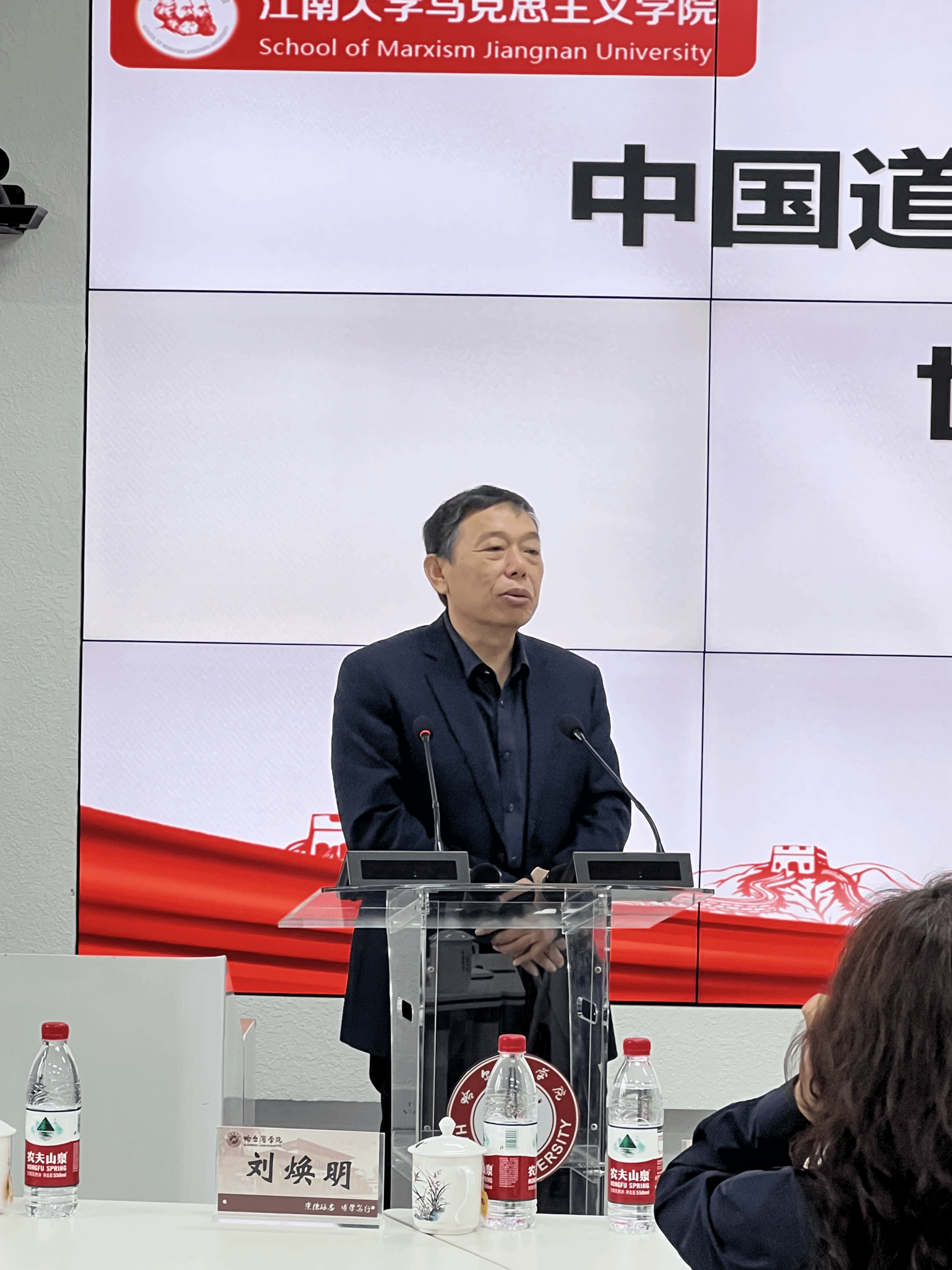 刘焕明教授是江南大学博士生导师,教育部思想政治理论课教学指导委员会委员。他在报告《中国道路的艰难选择及其世界历史意义》中指出,以毛泽东为代表的中国共产党人为中国应该走什么样的道路而进行了长期不懈的探索和思考,中国特色社会主义道路的选择为世界的和平、发展与生存做出了历史性贡献。