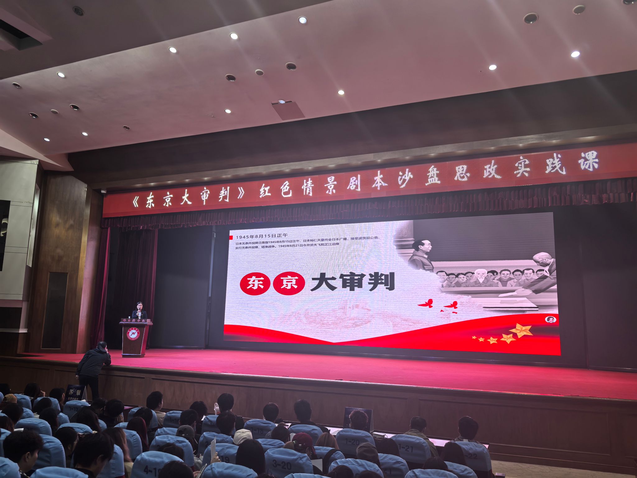 (文:安慧玉 ) 2025年9月24日,马克思主义学院本学期“具身实践”系列教学活动第二场——《东京大审判》红色剧本沙盘思政实践课在图书馆报告厅顺利举行。本次活动是我院实践教学教研室在教学创新上的又一次深入探索,特邀哈尔滨科学技术职业学院马克思主义学院的专业团队到场主持,带领同学们“穿越”时空,重回80年前那场关乎正义与国家尊严的世纪审判。马克思主义学院教学副院长冯引出席活动并致辞。