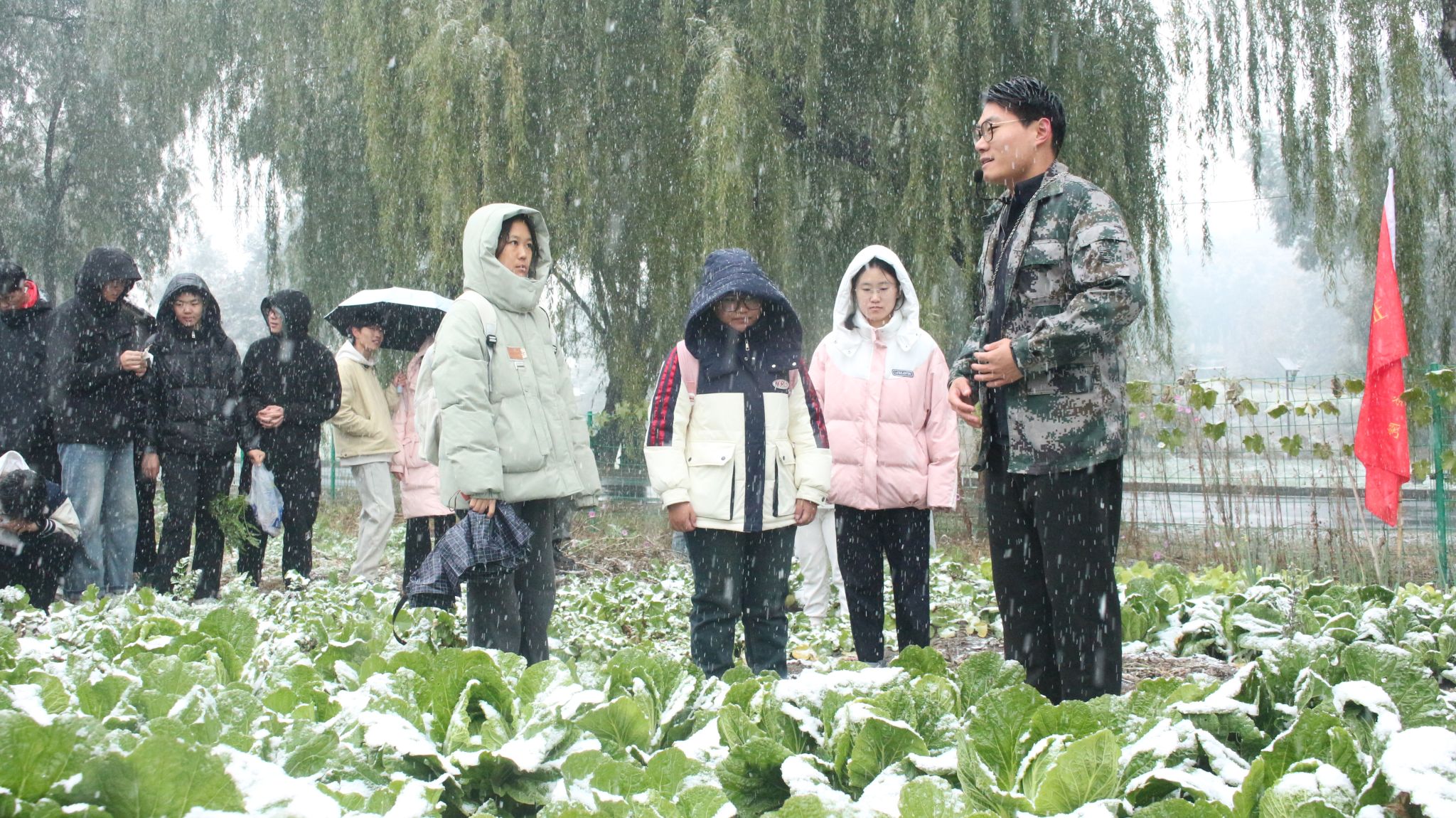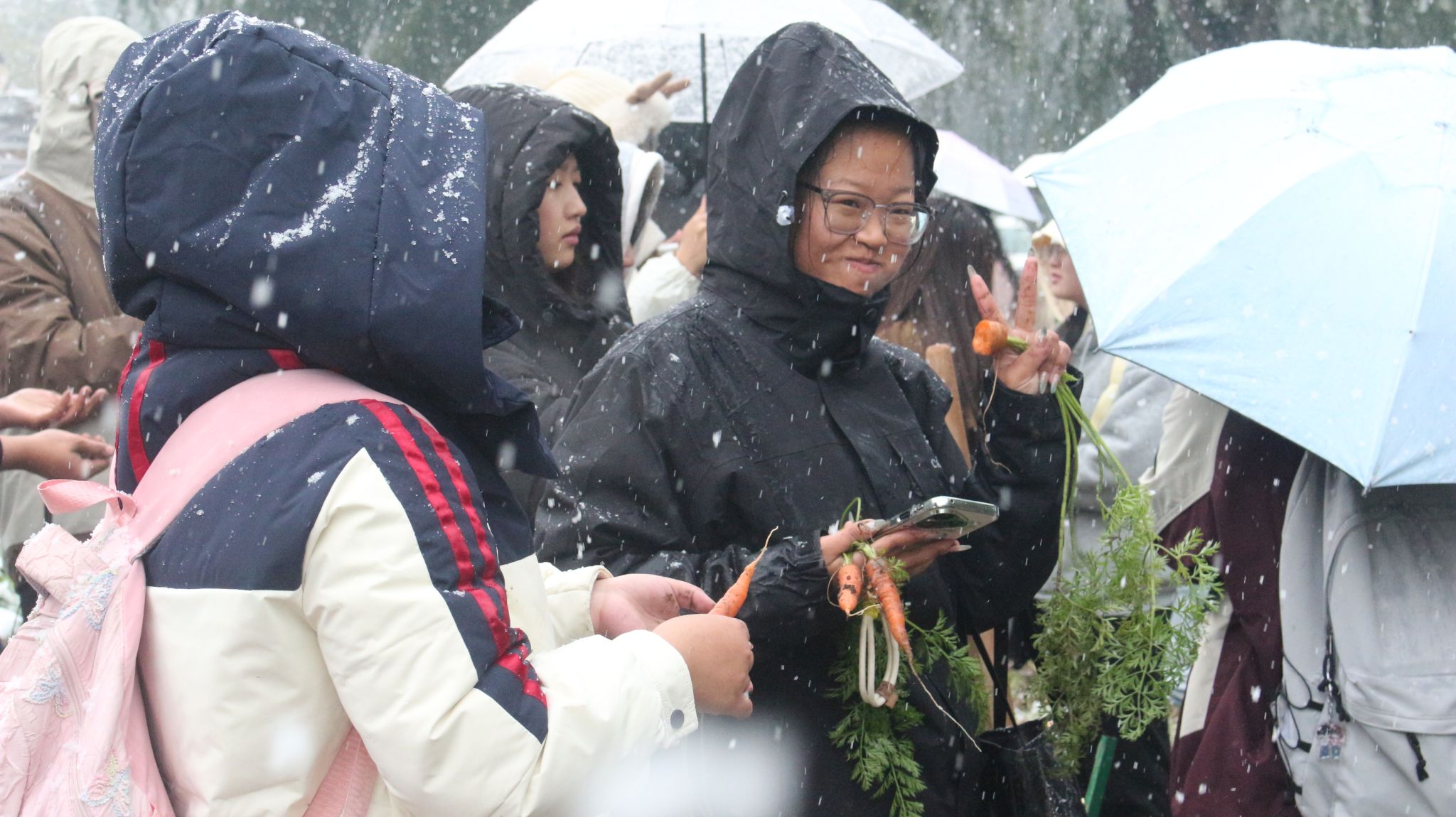 (文:安慧玉)2025年10月17日,哈尔滨迎来今秋首场瑞雪。风雪中,我校劳动实践基地“笃行园”内却是一派热火朝天的景象。近百名师生手握农具,在黑土地上感受秋收,上了一堂别开生面的思政课。