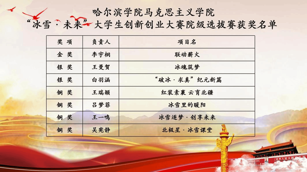 以赛为桥,共育创新沃土。本次大赛既是以赛赋能青年成长的具体实践,更是深化思想政治教育与创新创业教育、冰雪文化育人深度融合的重要举措。未来,马克思主义学院将持续搭建双创平台、整合多维资源、完善育人机制,紧扣新时代高校创新创业教育新要求,推动冰雪文化传承与创新实践有机融合,助力青年学子在传承冰雪文化、服务龙江高质量发展中挺膺担当、绽放青春光彩。