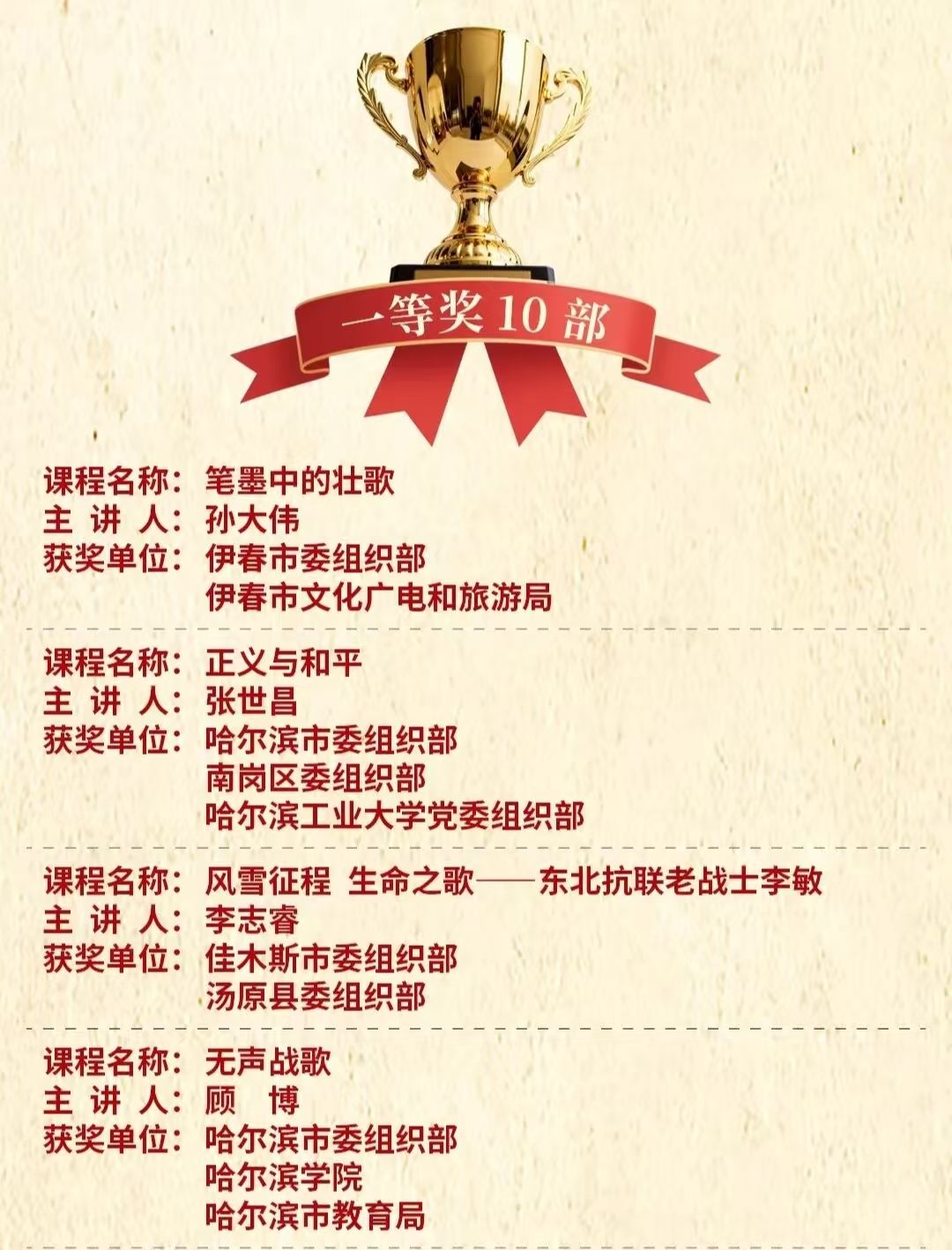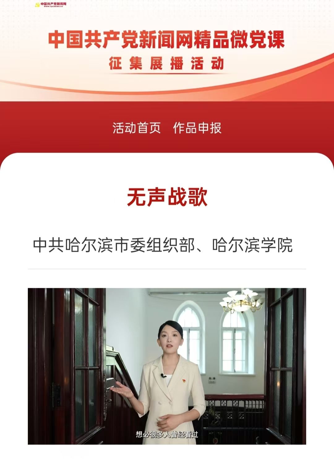 近日,中共黑龙江省委组织部对2025年度全省“党课开讲啦”活动优秀组织单位和精品党课进行通报表彰。由我校与哈尔滨市委组织部联合策划制作、马克思主义学院顾博老师主讲的主题微党课《无声战歌》,在全省众多参赛作品中脱颖而出,荣获“精品党课一等奖”。