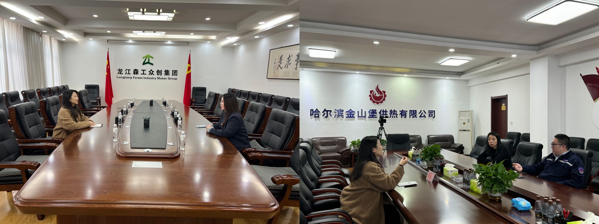 在黑龙江森工众创集团有限公司和哈尔滨金山堡供热有限公司,李轶琦分别与相关负责同志深入交流。两家单位均为服务地方经济发展和民生保障的重要国有企业,在管理运营、综合服务等岗位对思政类、管理类专业人才有持续需求。走访中,双方围绕实习实践基地建设、岗位拓展与校园招聘合作等方面交换意见,为后续协同育人、精准输送人才奠定了良好基础。