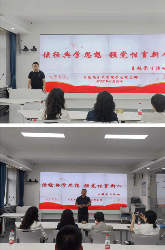 6月21日,马克思主义学院党总支学生党支部组织开展“读经典学思想,强党性育新人”主题党日活动。希望广大青年学生在阅读红色经典中汲取文化养分和精神力量,在学习交流中明德立志,深刻感悟初心使命。本次主题党日活动邀请了哈尔滨学院校党委副书记李娜同志、党委组织部丛军部长、马克思主义学院党总支部书记孙芳、副院长李景瞳参加。主题党日活动由马克思主义学院学生党支部书记孟昭名主持,思想政治教育专业全体积极分子和发展对象参加。