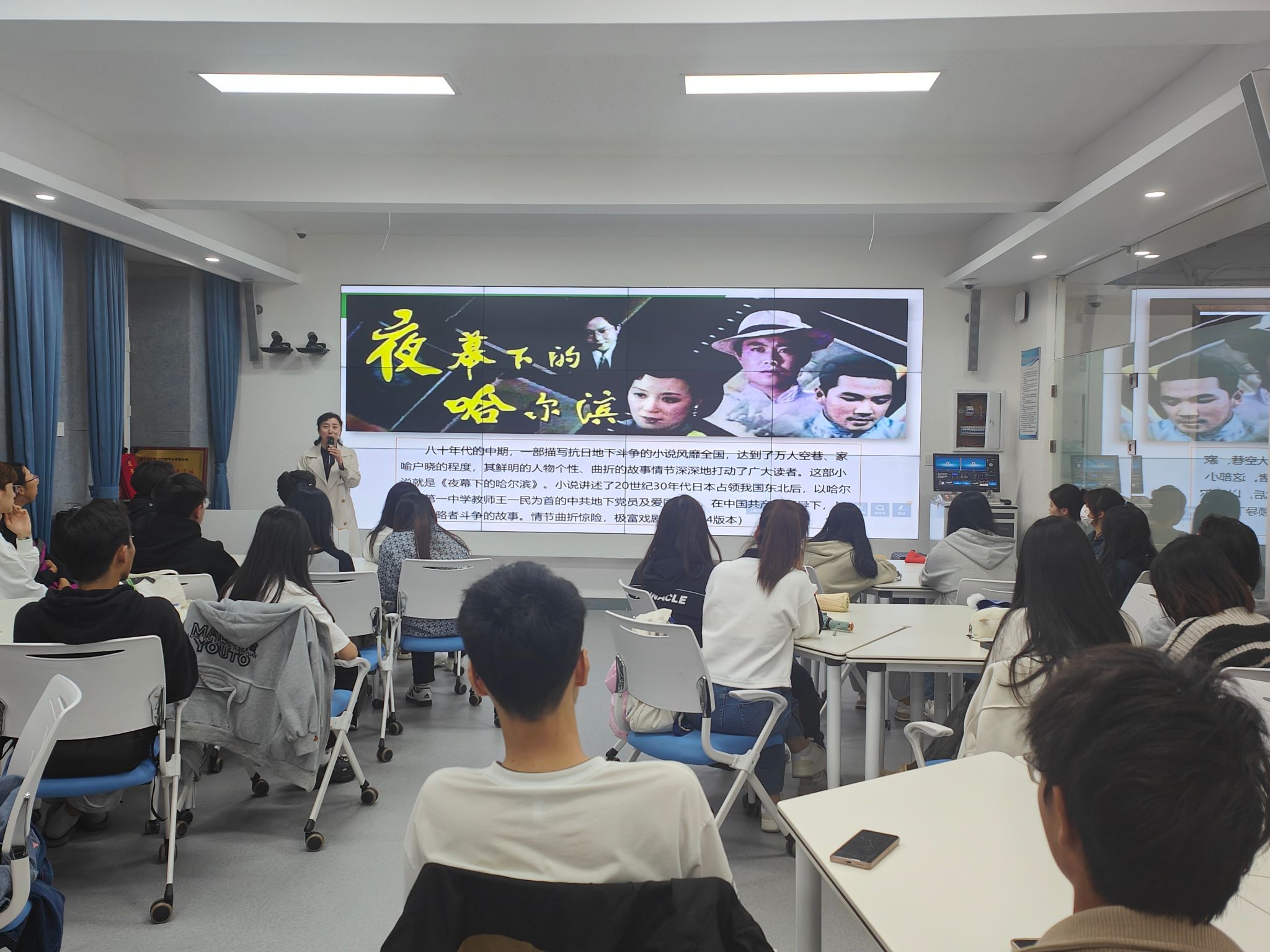 观影活动前,安慧玉教授向同学们介绍了活动的意义与安排,强调红色影视作品是思想政治理论课程的生动素材,通过电影屏幕,我们可以回顾历史场景,重温革命故事,深刻感受党的奋斗历程和辉煌成就。观看完《夜幕下的哈尔滨》前两集后,参与活动的学生表现出浓厚的兴趣,计划在业余时间继续观看。他们还分享了对电视剧中人物、情节和历史背景的看法和感想。马克思主义学院红旗实践团还准备组织经典片段的模拟表演和台词诵读活动,以让同学们更深入地体验电视剧中的情感和氛围,增进对红色文化的认同和传承。