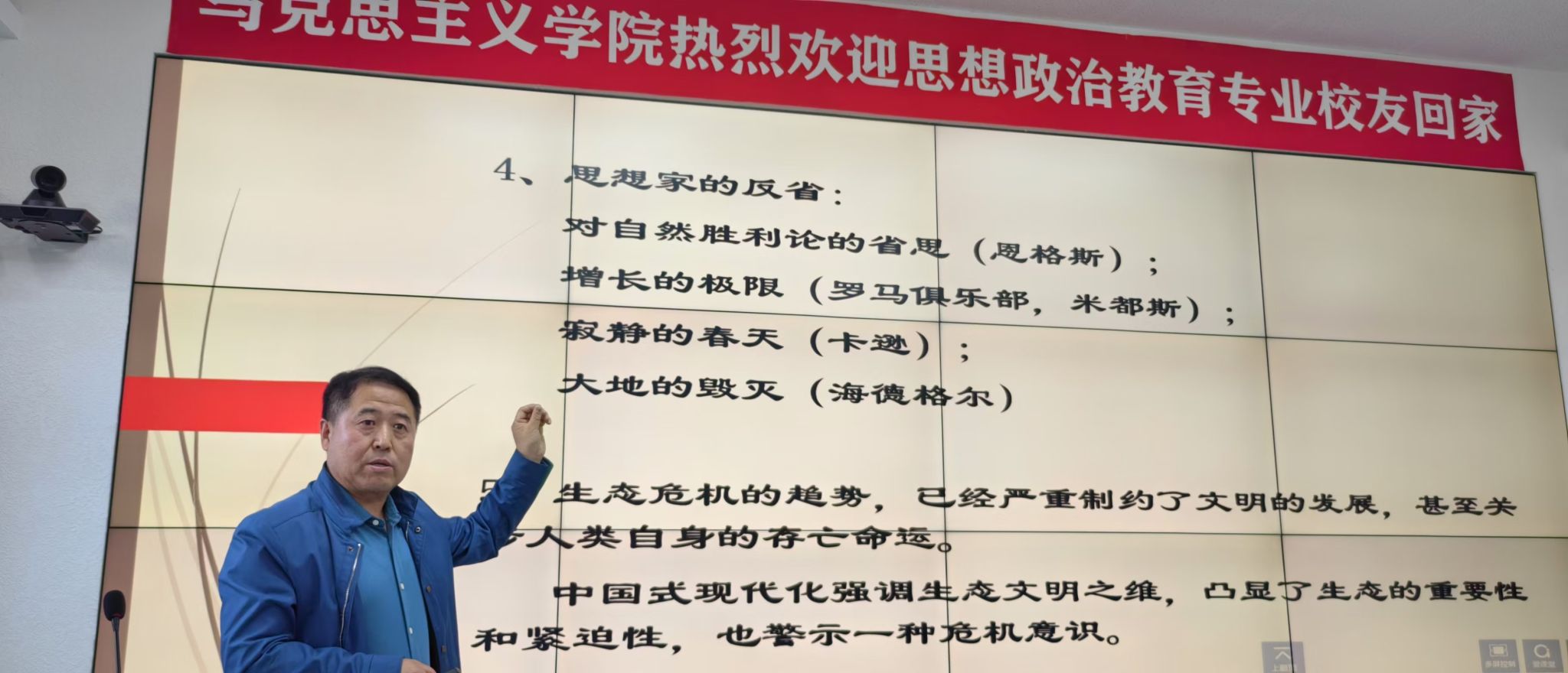 10月13日,沐浴着哈尔滨学院建校90周年校庆的喜悦气氛,黑龙江大学王晓东教授来到马克思主义学院,做了一场题为“中国式现代化的生态文明之维”的学术报告。马克思主义学院全体教师及思想政治教育专业受邀参加校庆活动的校友现场聆听了报告。报告会由孙芳书记主持。