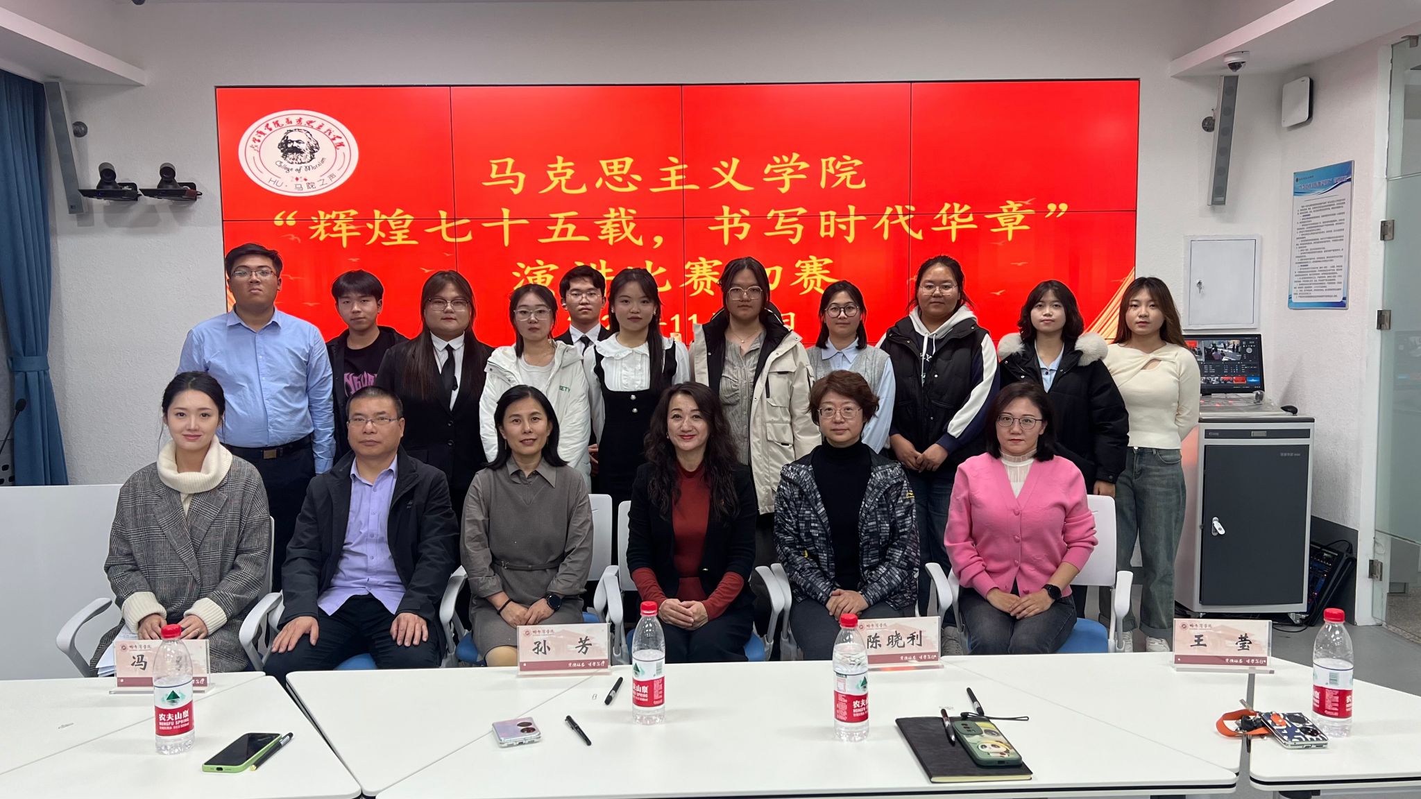 历史的长河波澜壮阔,祖国的山河壮丽多姿。每一颗中国心,都跳动着对大好河山深沉的挚爱;每一份中国情,都凝聚着民族复兴的璀璨荣光。为进一步弘扬爱国主义精神,积极响应“立德树人、思政先行”的热切感召,切实发挥好“大思政课”指引方向、启智润心作用,丰富哈尔滨学院科技文化艺术节活动形式,全面激发哈院学子赓续红色血脉、传承红色基因的热情,马克思主义学院协同共青团哈尔滨学院委员会于2024年11月13日在思政智慧实践基地举办“辉煌七十五载,书写时代华章”系列主题演讲比赛。马克思主义学院党总支书记孙芳携手马克思主义学院教师陈晓利、冯引、张仲广、王莹出任评委,24级思想政治专业石立峰、杨滟霖同学担任主持,来自全校各专业的26位选手参加比赛。