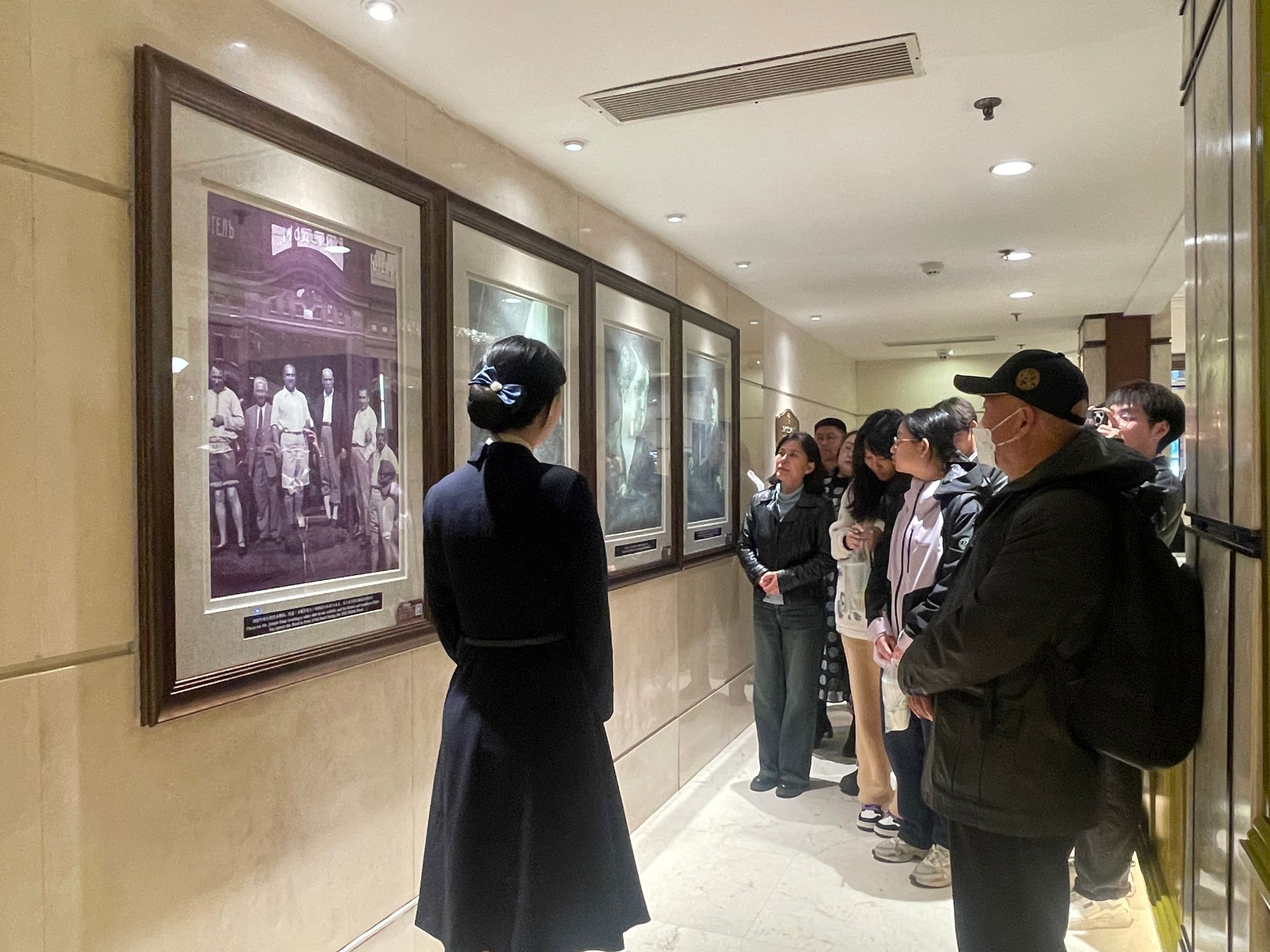 师生们仿佛置身于当年的“一号会议室”,重温了1948年10月至11月间在此举行的三次“新政协诸问题座谈会”。通过细致的讲解,大家了解到沈钧儒、章伯钧、谭平山、蔡廷锴等民主人士代表与中共代表如何就新政协的召开时间、地点、参会单位、代表名额等关键问题进行反复磋商,最终达成了具有里程碑意义的《关于召开新的政治协商会议诸问题的协议》。这份协议的达成,为1949年中国人民政治协商会议第一届全体会议的胜利召开奠定了坚实基础,也使马迭尔宾馆成为了中国共产党领导的多党合作和政治协商制度形成的重要历史见证地。