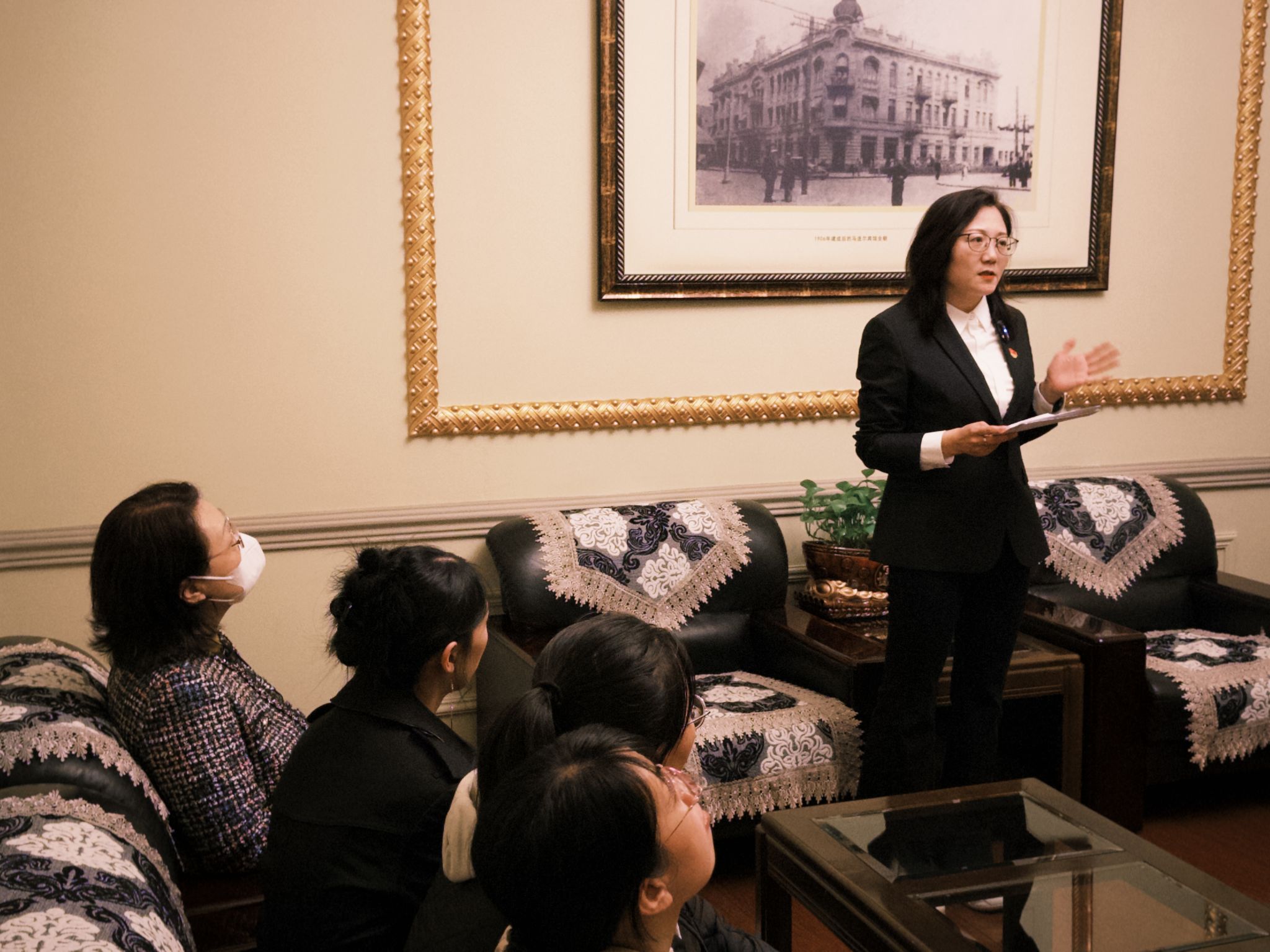 师生们共同回顾了马迭尔宾馆的百年历史,特别是作为哈尔滨重要的历史文化地标所承载的特殊意义。现场教学重点聚焦于1948年,在中国人民解放战争取得决定性胜利的背景下,中共中央发布“五一口号”,得到各民主党派、无党派民主人士和社会贤达的热烈响应,共同推动召开新的政治协商会议的历史进程。三位讲述者详细介绍了哈尔滨何以成为当时共商大计的理想之地,以及中共代表与先期抵达的民主人士代表在马迭尔宾馆进行的一系列重要会商。
