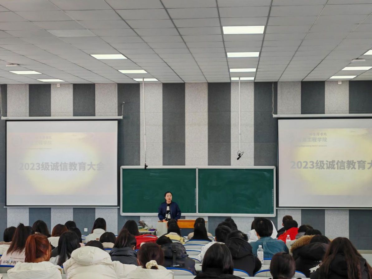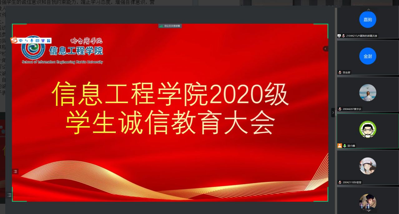 为落实《信息工程学院2023-2024学年学风建设工作落实方案》,推进学风建设,增强学生的诚信意识和自我约束能力,端正学习态度,增强自律意识,营造诚信做人、诚信做事的校园氛围,以良好的考风促进优良学风建设,信息工程学院(软件学院)组织我院学子开展诚信教育大会。