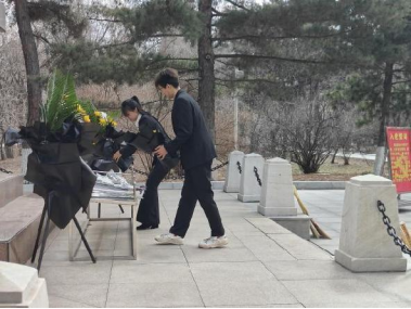 随后,党员向先烈们敬献鲜花,表达深深的怀念之情。教师党员代表夏广慧也代表学院向烈士墓敬献花篮,寄语全体师生永远铭记历史,为祖国的繁荣富强贡献力量。