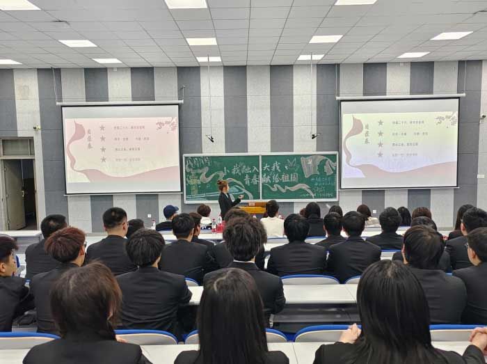 首先由软件5班团支书带领班级同学了解开展此次团会的目的。而后,软件工程5班全体同学为大家表演了以抗日时期的青岛为背景的舞台剧《历史今朝》。通过本次舞台剧的演绎,使同学们对历史有了进一步的了解,真实还原了五四时期青年的思想觉醒与反抗。最后,22级软件五班集体同学进行了一段红色文字与红心相照应的诗朗诵以及向党向国的深情献唱。每一位信工学子在此次团会中都将自身的小我融入班级和祖国的大我之中,深刻的理解到“青春献给祖国”的真实含义。