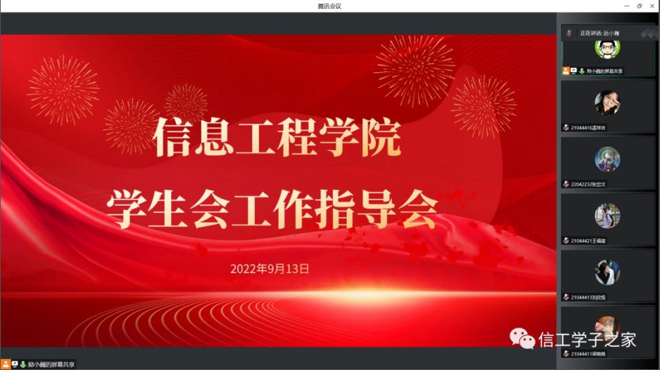 为深入学习贯彻党的二十大精神,深刻领会党的二十大报告的丰富内涵与核心要义,进一步提升学生会成员的宗旨意识与服务水平,部署未来工作计划,信息工程学院(软件学院)于2022年9月13日,组织开展2022年秋季学期学生会工作指导会。本次会议由我院分团委书记励小巍主持,学生会全体成员参加。