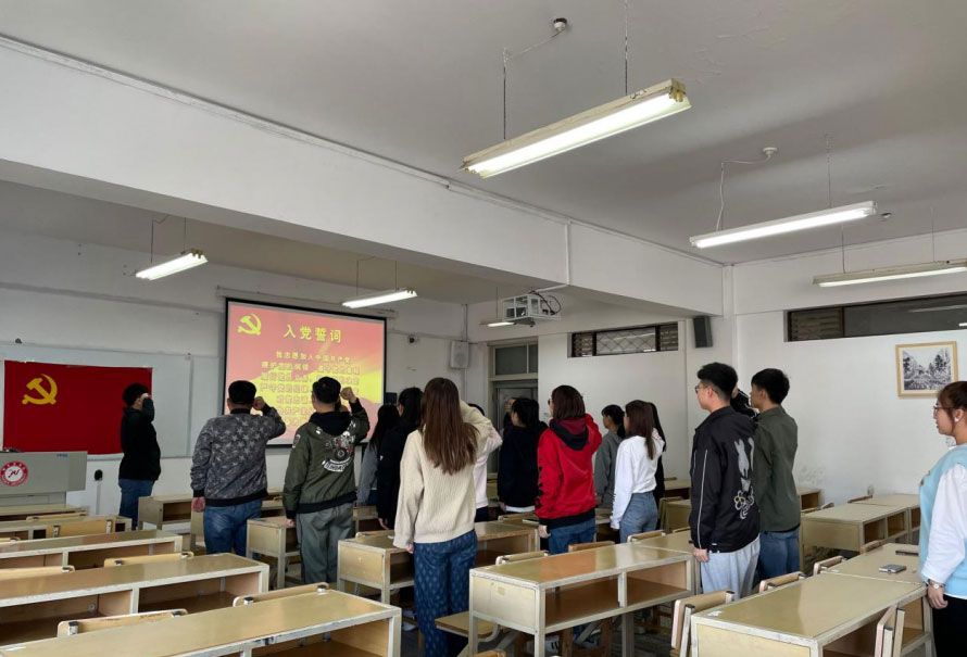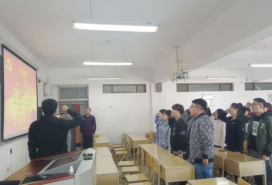 会议共有三项内容。第一项,在校的19名预备党员逐一汇报自己近期思想、学习和生活方面的情况。第二项,学生党支部书记励小巍带领预备党员们回顾了党的光辉历史,并对大家提出以下三点希望:一是希望预备党员在今后的学习工作生活中务必做到:加强政治理论学习,坚定理想信念;加强党性修养,提高自身素质,在群众中真正展现共产党员的良好形象;加强专业学习,提升科学文化和专业素养,在工作学习中体现先进性,充分发挥模范带头作用。二是不断加强对马列主义、毛泽东思想、邓小平理论、“三个代表”重要思想、科学发展观、习近平新时代中国特色社会主义思想等重要思想的学习,深入钻研专业理论知识,提高自己的政治素养和专业能力;三是努力学习科学文化知识,勇攀科技高峰,提高服务社会、服务人民的本领。第三项,举行入党宣誓仪式,由党员耿直带领19名预备党员共同宣誓,举起右手,面向党旗,庄严宣誓,用洪亮的誓言声表达对党的热爱忠诚以及全心全意为人民服务的决心。